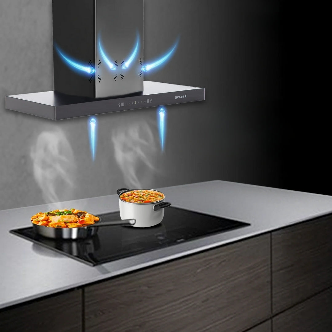 Faber 90 cm Wall Mounted Chimney HOOD CYGNUS IN 3D HC SC FL BK 90