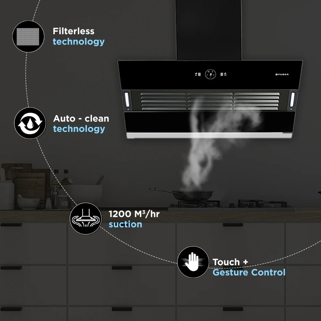 Faber 90 cm Wall Mounted Chimney HOOD VERTIGO FL SC AC BK 90