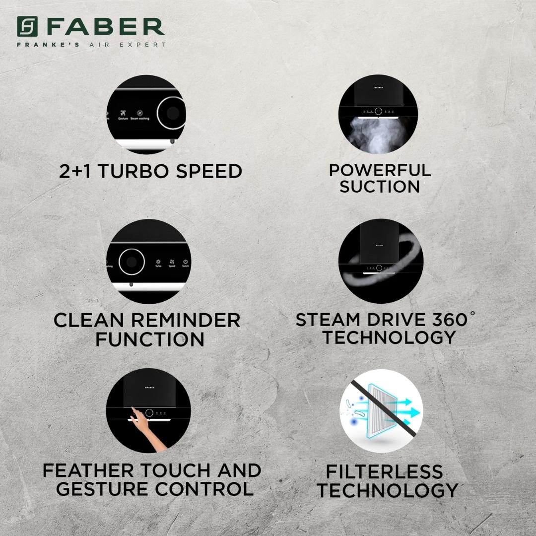 Faber 90 cm Wall Mounted Chimney THUNDER BOLT FL SW SC BK 90