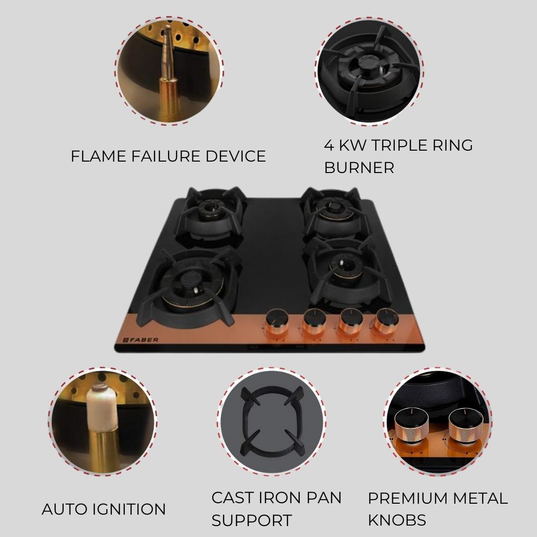 Faber 60 cm 4 Burner Hob Utopia Series UTOPIA HT 604 BR CI