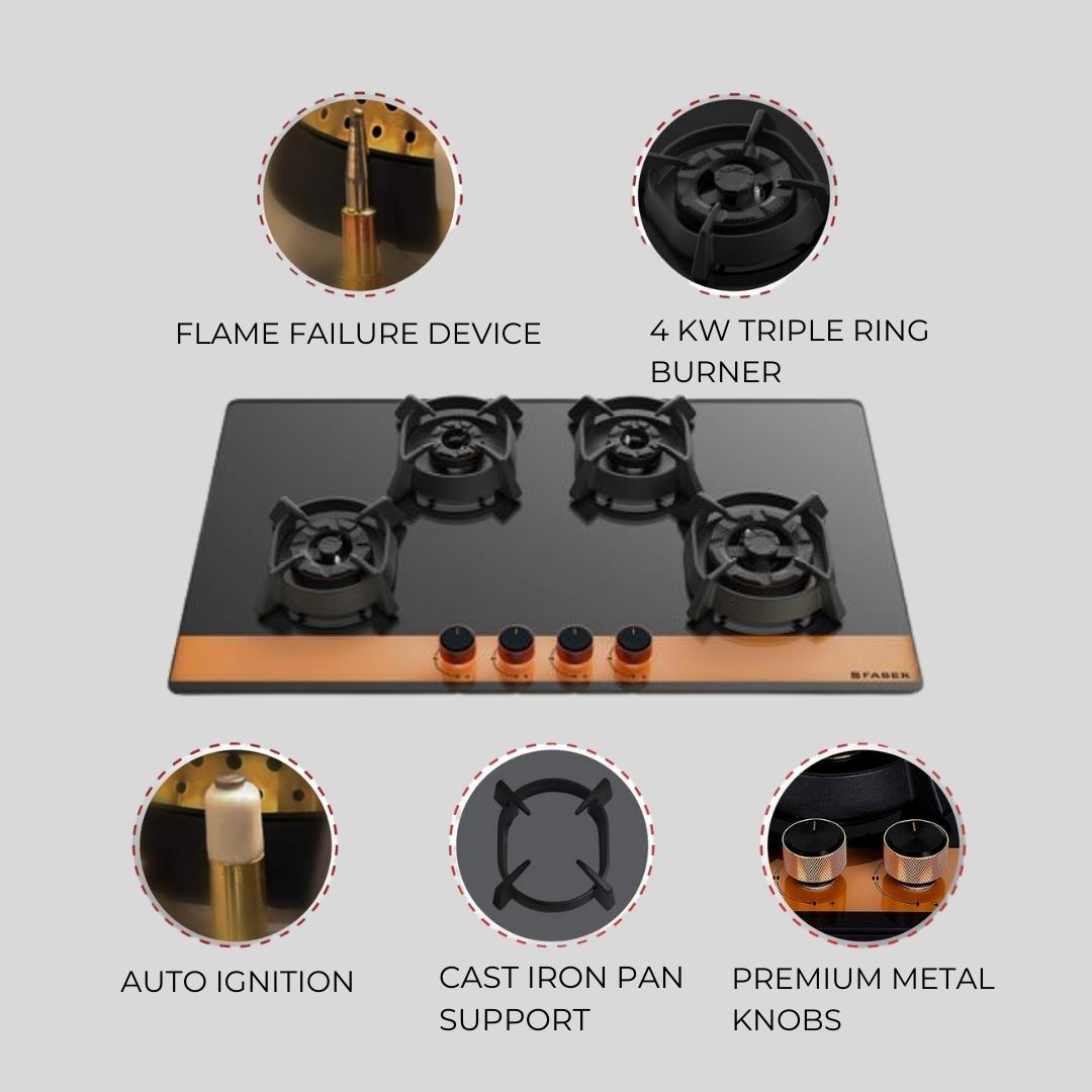 Faber 80 cm 4 Burner Hob Utopia Series UTOPIA HT 804 BR CI