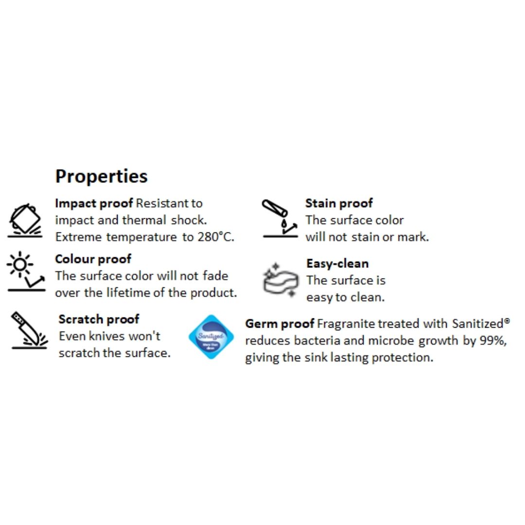 Fragnite is a proprietary material known for its exceptional durability and resistance to scratches and stains. It is a composite material made from a blend of natural minerals and acrylic resins, offering a sleek and modern appearance for kitchen sinks.