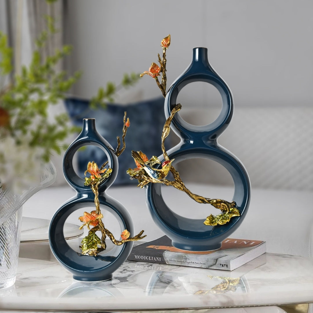 This dual circular decorative centerpiece is a mesmerizing fusion of artistry and nature's beauty, designed to captivate and inspire. Crafted with meticulous attention to detail, it features two circular components that come together to form a stunning display of balance and harmony. The intricate detailing adds an air of artistic elegance, while the natural motifs evoke a sense of wonder and appreciation for the world around us. Whether placed on your table, mantel, or as a statement piece in your living space, it becomes a focal point that invites you to embrace the fusion of artistic expression and the beauty of the natural world.