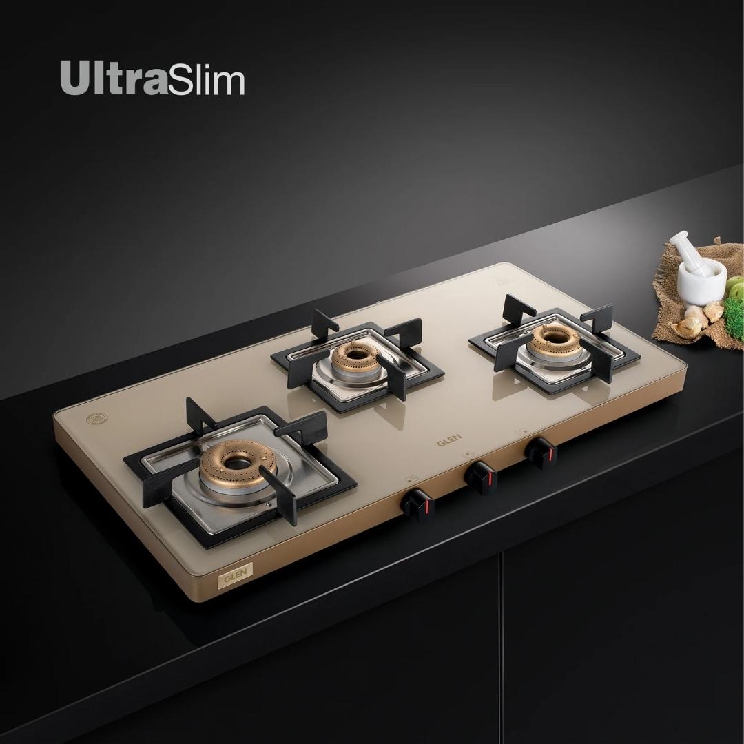 Glen 78 cm 3 Burner Cooktop CT 1035 Ultra Slim Apricot