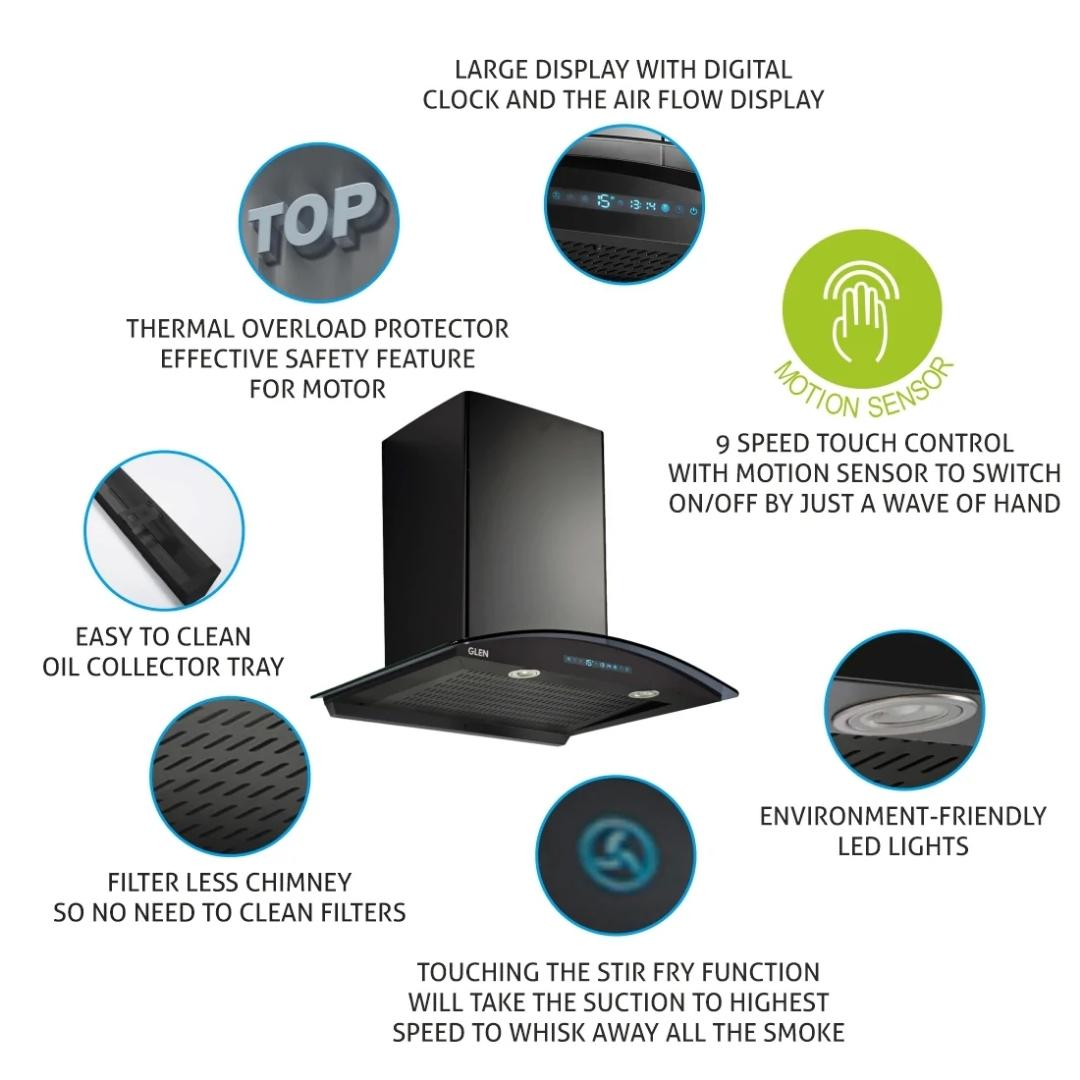 Glen 76 cm Wall Mounted Chimney Filterless Series CH 6067 BL BLDC AC 76