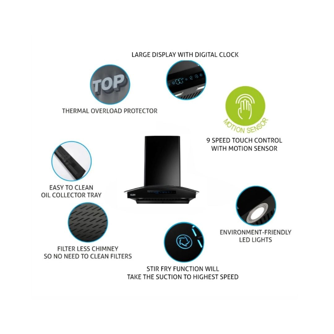 Glen 76 cm Wall Mounted Chimney Filterless Series CH 6069 BL BLDC AC 76