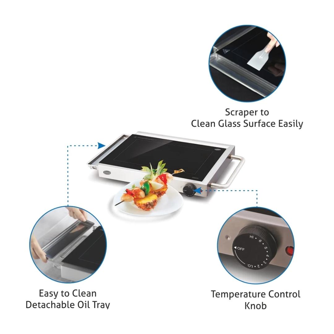 - Cook & grill foods directly on the glass surface