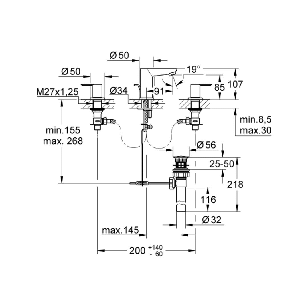 Grohe Table Mounted Tall Boy Basin Mixer Bauflow 32851000 - Chrome