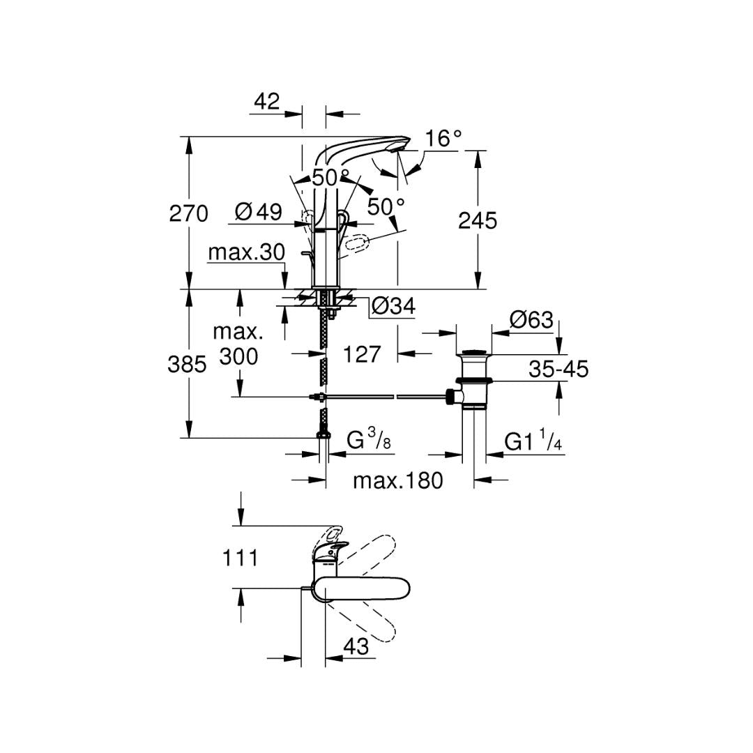 Grohe Table Mounted Tall Boy Basin Mixer Eurostyle Loop 23569LS3 - Moon White Chrome