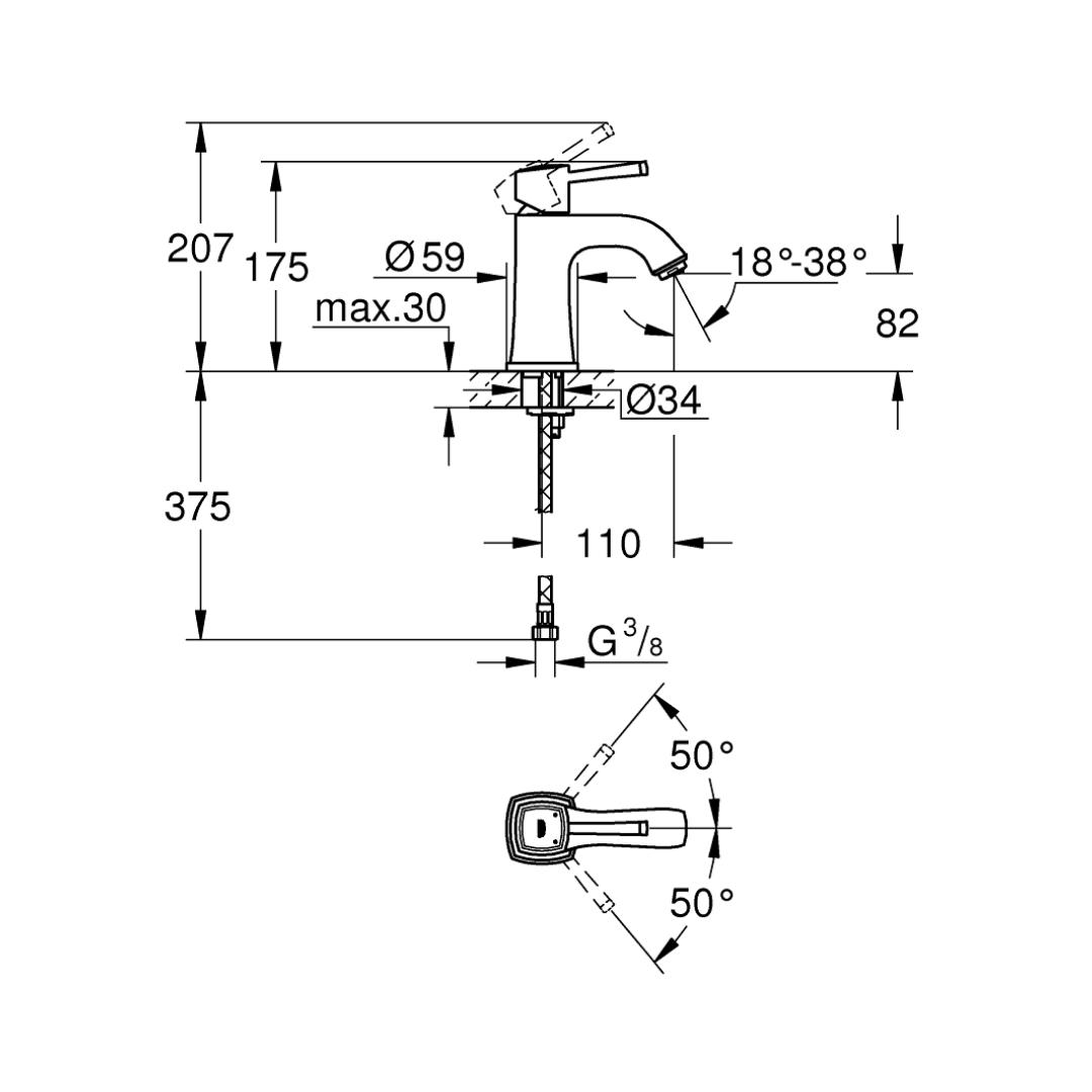 Grohe Table Mounted Tall Boy Basin Mixer Grandera 23310IG0 - Chrome Gold