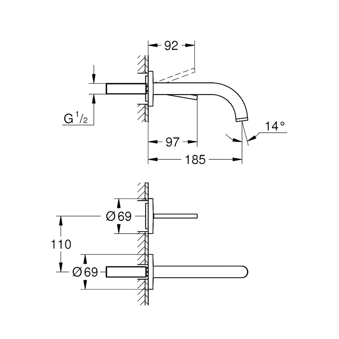 Grohe Wall Mounted Basin Mixer Atrio 19287AL3 - Hard Graphite