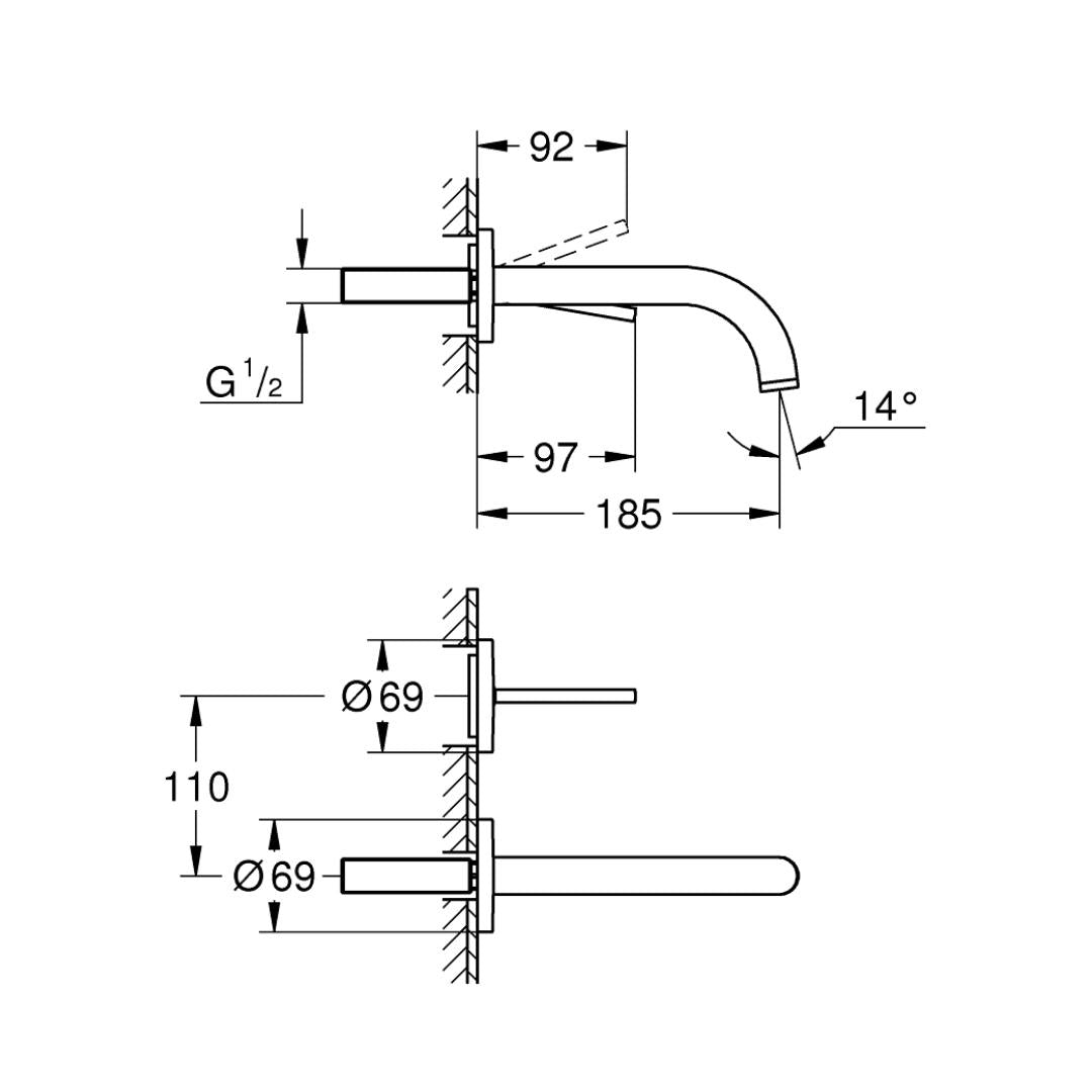 Grohe Wall Mounted Basin Mixer Atrio 20169DC3 - Supersteel