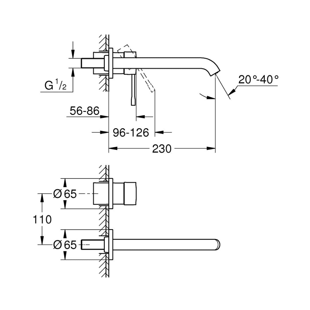 Grohe Wall Mounted Basin Mixer Essence 19967A01 - Hard Graphite