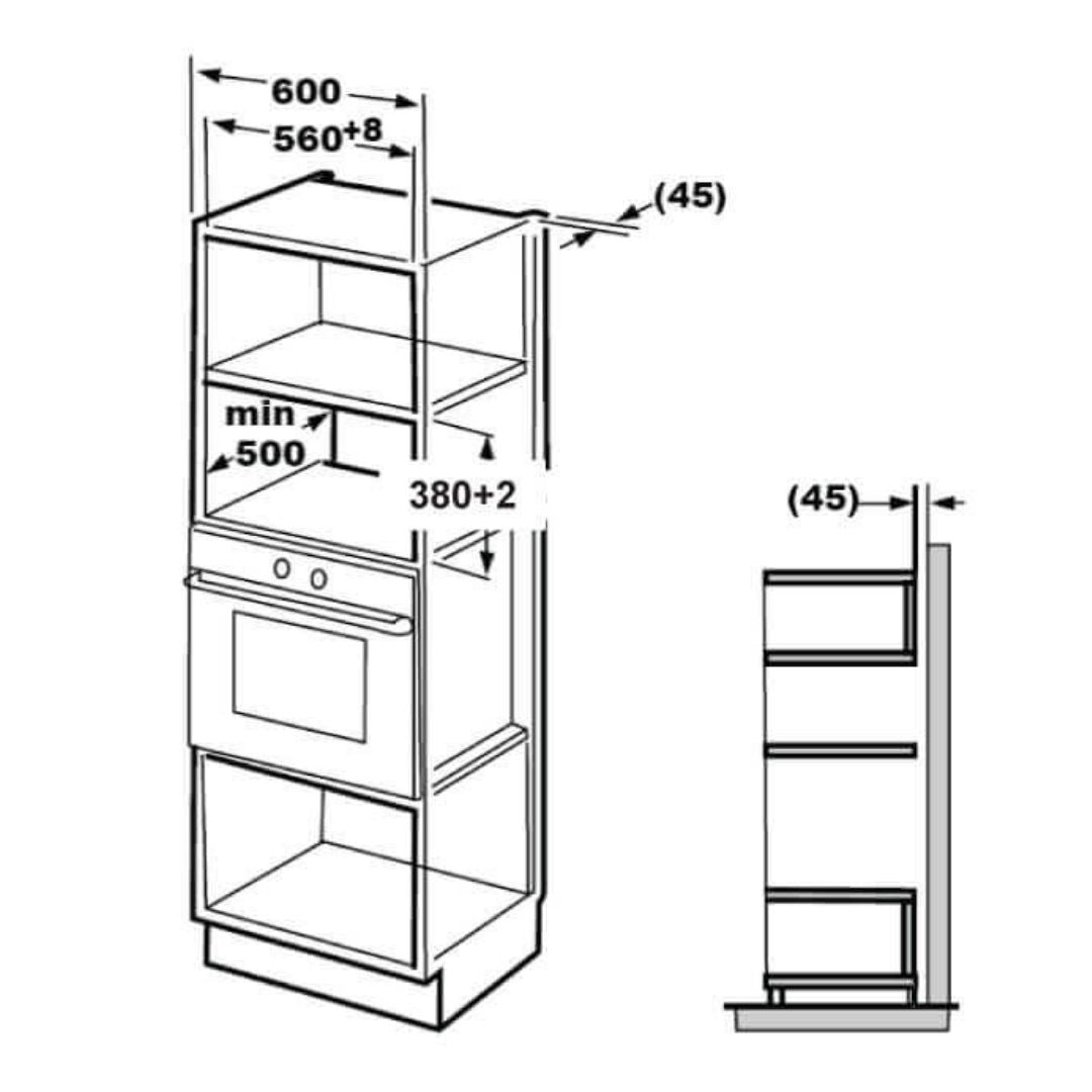 To fit a built-in appliance, please provide the cabinet/cutout cutting dimensions to your kitchen manufacturer. The cutting dimensions for each model are mentioned as carcass dimensions or cutout dimensions in the description table of that model. Please ensure that the back of the carcass (cabinet) is left open for ventilation, or air slits are created for ventilation. If there is no ventilation in the carcass (cabinet), the product may fail, and the warranty will be null and void. Please note that you must provide an electrical point as per the specifications in the product manual for operating the built-in appliance. Preferably, this point should be behind the built-in appliance.
