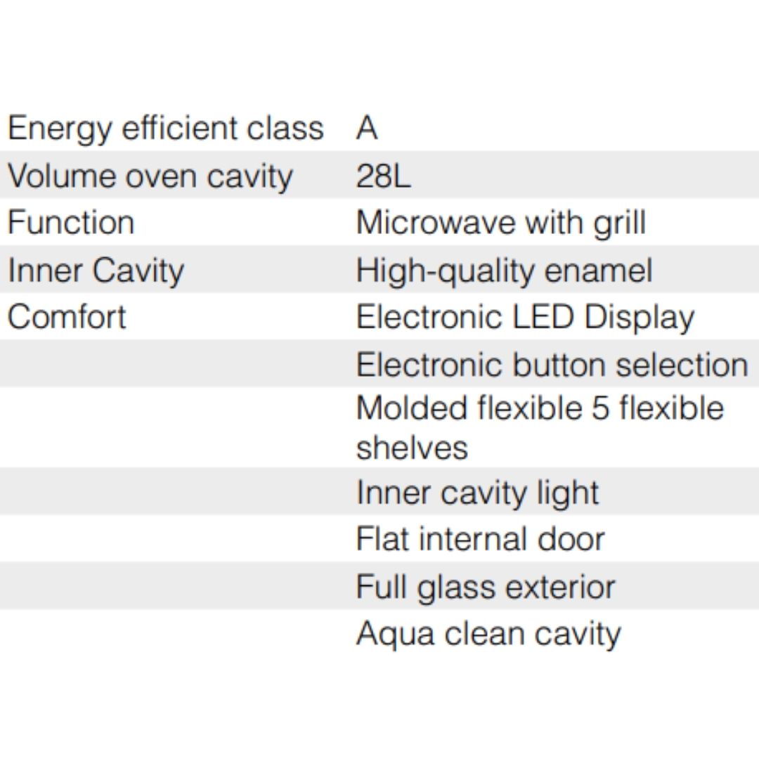 - Volume oven cavity : 28L