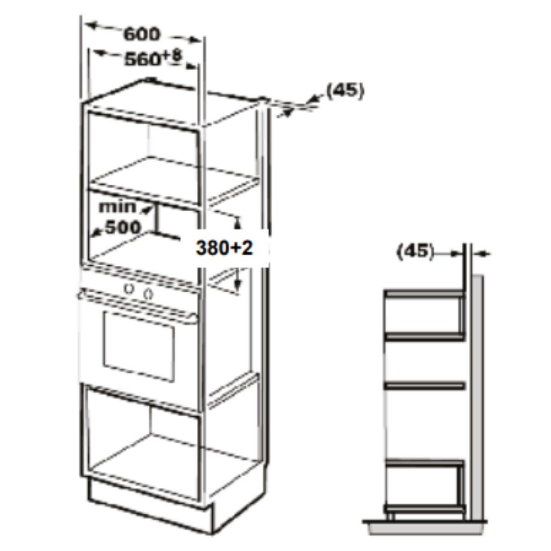 To fit a built-in appliance, please provide the cabinet/cutout cutting dimensions to your kitchen manufacturer. The cutting dimensions for each model are mentioned as carcass dimensions or cutout dimensions in the description table of that model. Please ensure that the back of the carcass (cabinet) is left open for ventilation, or air slits are created for ventilation. If there is no ventilation in the carcass (cabinet), the product may fail, and the warranty will be null and void. Please note that you must provide an electrical point as per the specifications in the product manual for operating the built-in appliance. Preferably, this point should be behind the built-in appliance.