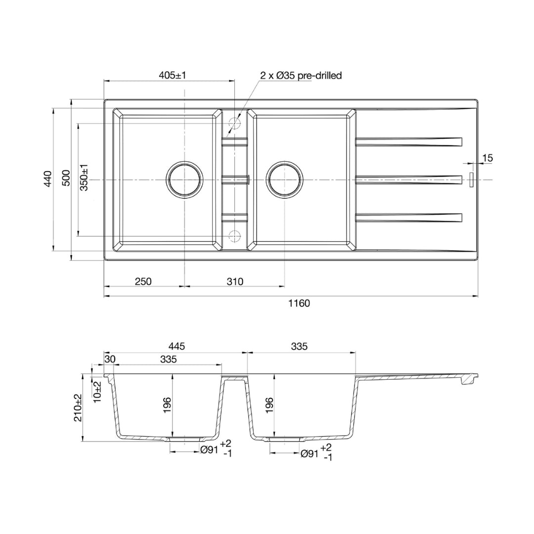 Hafele Quartz Sink Lithos Quartz Range GRANDE DOUBLE BOWL ( 46 x 20 inches ) - Mocha