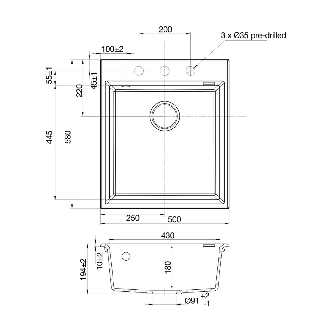 Hafele Quartz Sink Lithos Quartz Range QUADRA SINGLE BOWL ( 20 x 23 inches ) - Obsidian