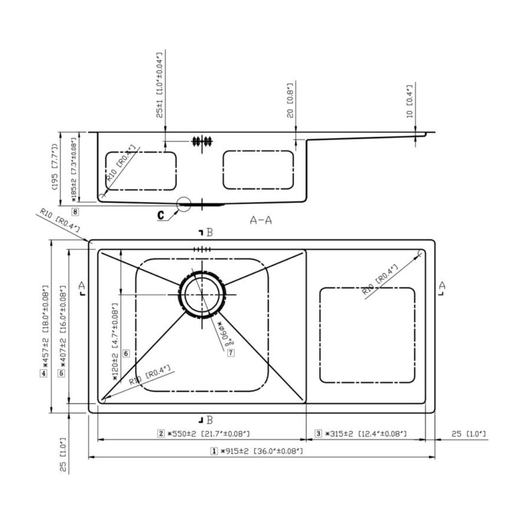 Hafele Stainless Steel Sink Argento SINGLE BOWL WITH DRAIN BOARD EMERALD R3618 ( 36 x 18 inches ) - Satin