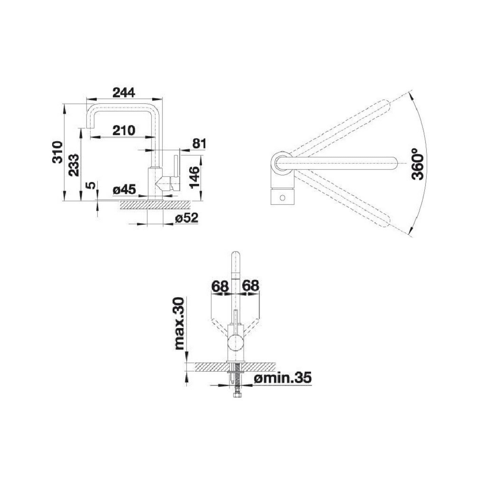 Hafele Table Mounted Regular Kitchen Sink Mixer Blanco MILI with Swinging Spout in Anthracite Finish