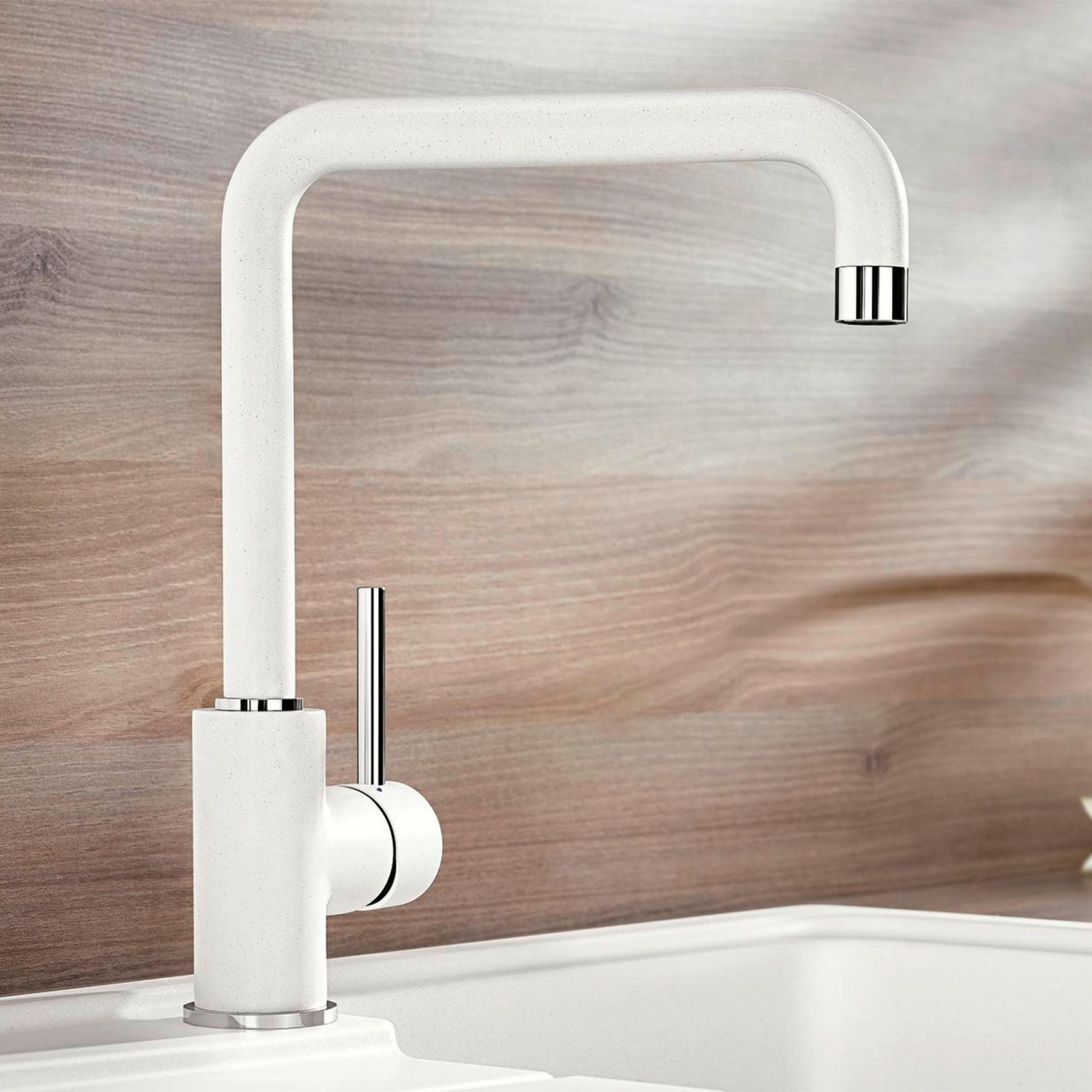 Hafele Table Mounted Regular Kitchen Sink Mixer Blanco MILI with Swinging Spout in White Finish