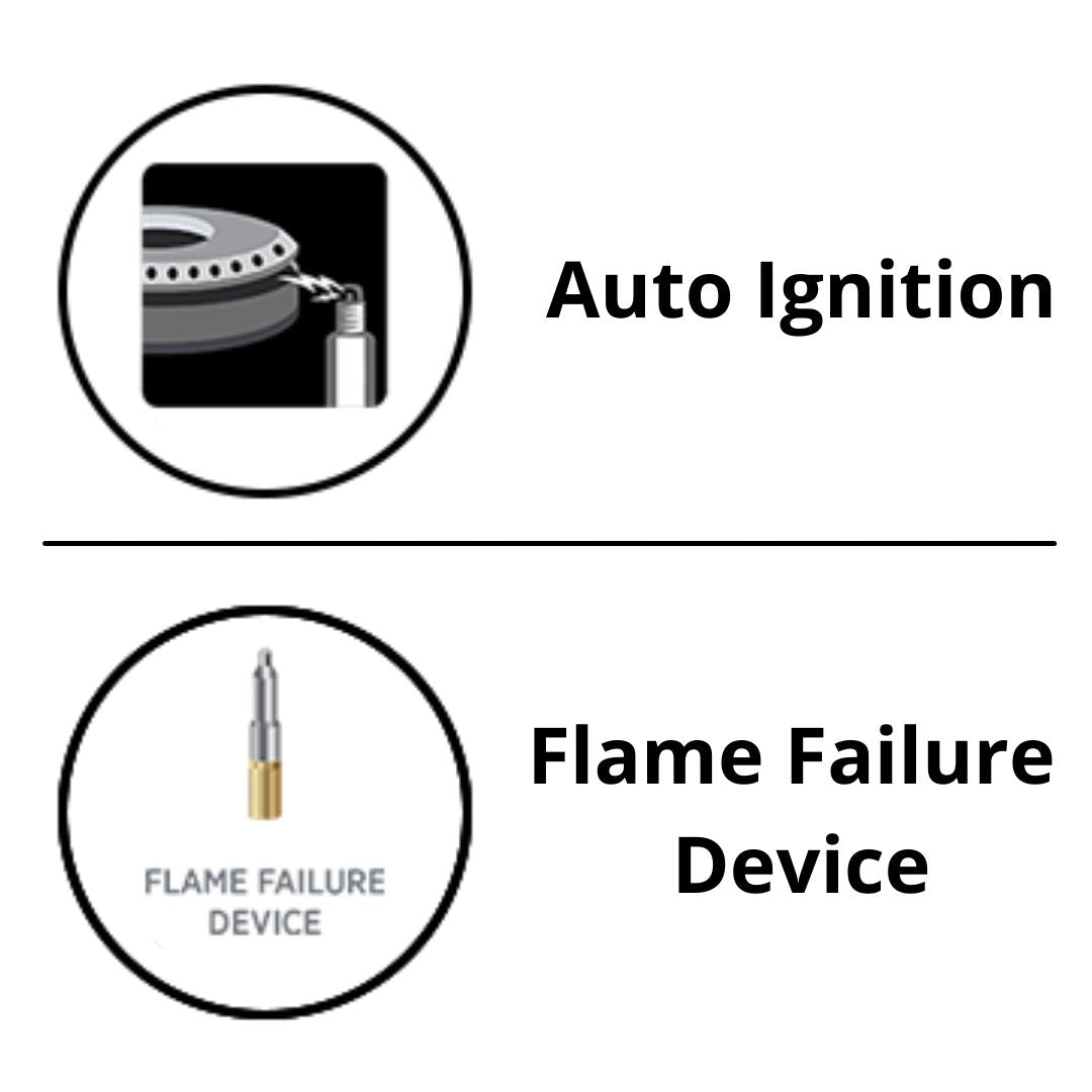 - All Burners with Flame Failure Device (FFD): Flame Failure Device prevents accidental gas leakage. In case if while cooking the flame goes off due to any reason like spillage or wind then safety device / FFD immediately cuts off the gas supply to the burner and prevents gas leakage