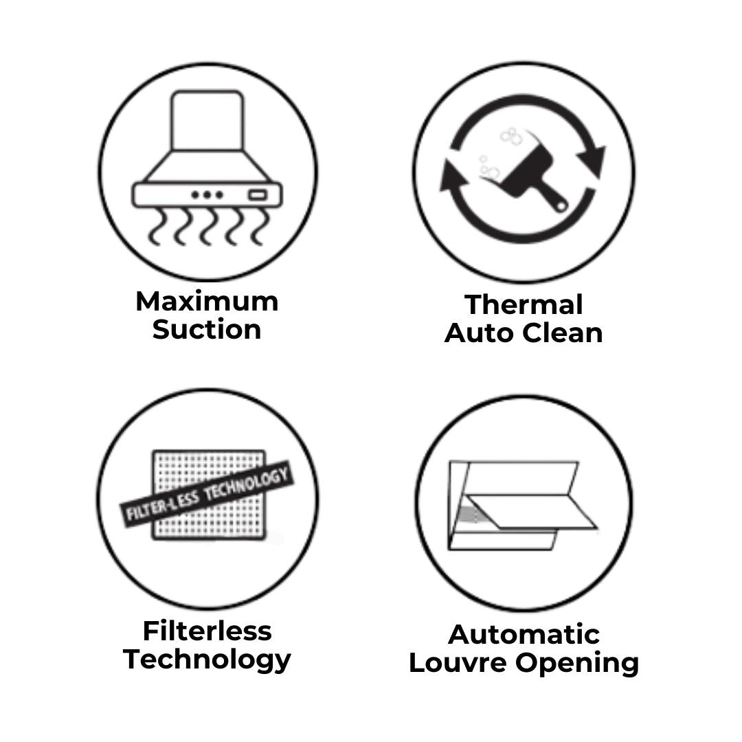 - Automatic Louvre Opening : The Louvre opens automatically as soon as the chimney is turned on to start the suction process.