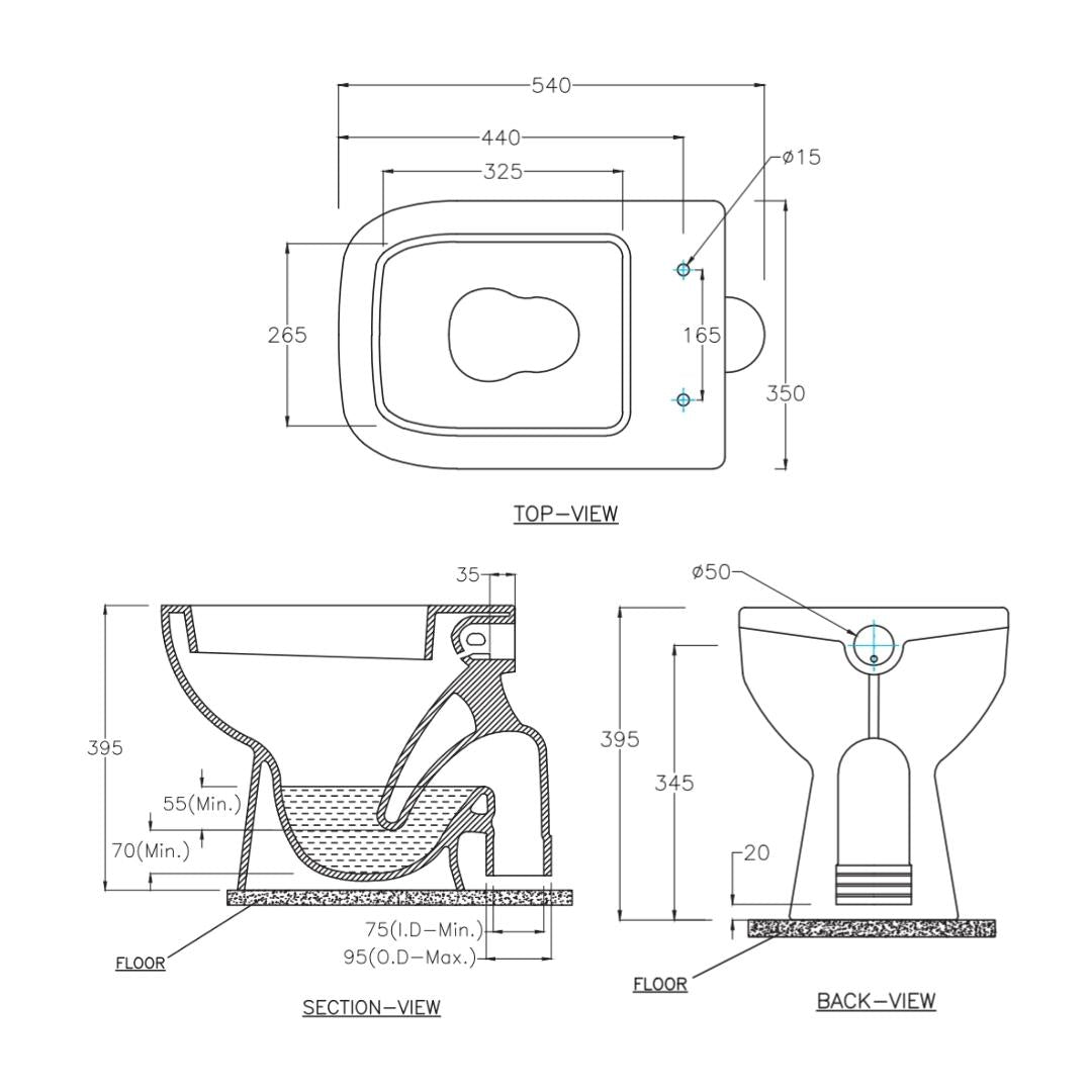 Floor mounted closets are traditional toilets that are mounted on the floor. They are known for their stability and ease of installation. This design is versatile and compatible with a wide range of bathroom layouts, making it a popular choice for both residential and commercial spaces.