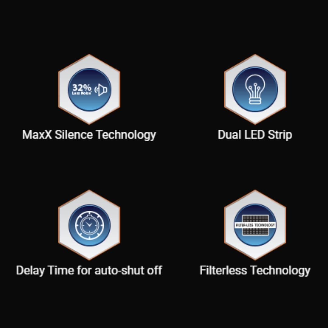 - MaxX Silence Technology : Hindware MaxX Silence Kitchen Chimneys produce 32% less noise when compared to conventional Auto-clean Kitchen Chimney.