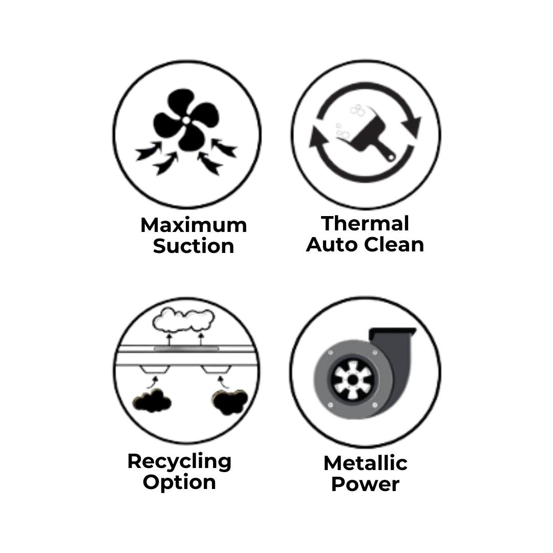 - Max. Suction : The chimneys come with powerful suction power. The maximum suction feature makes our chimneys one of the best kitchen chimneys available in India.