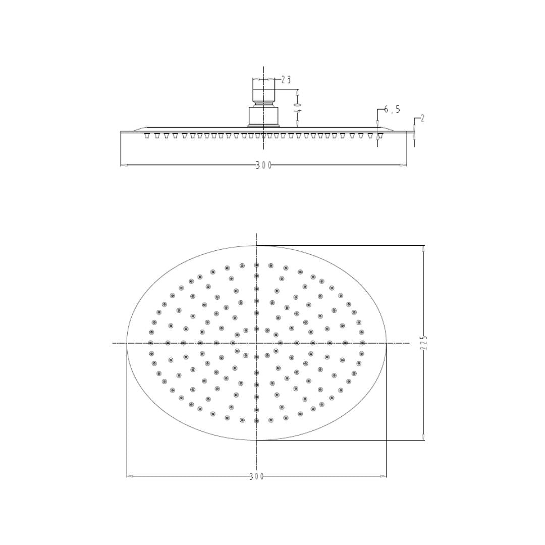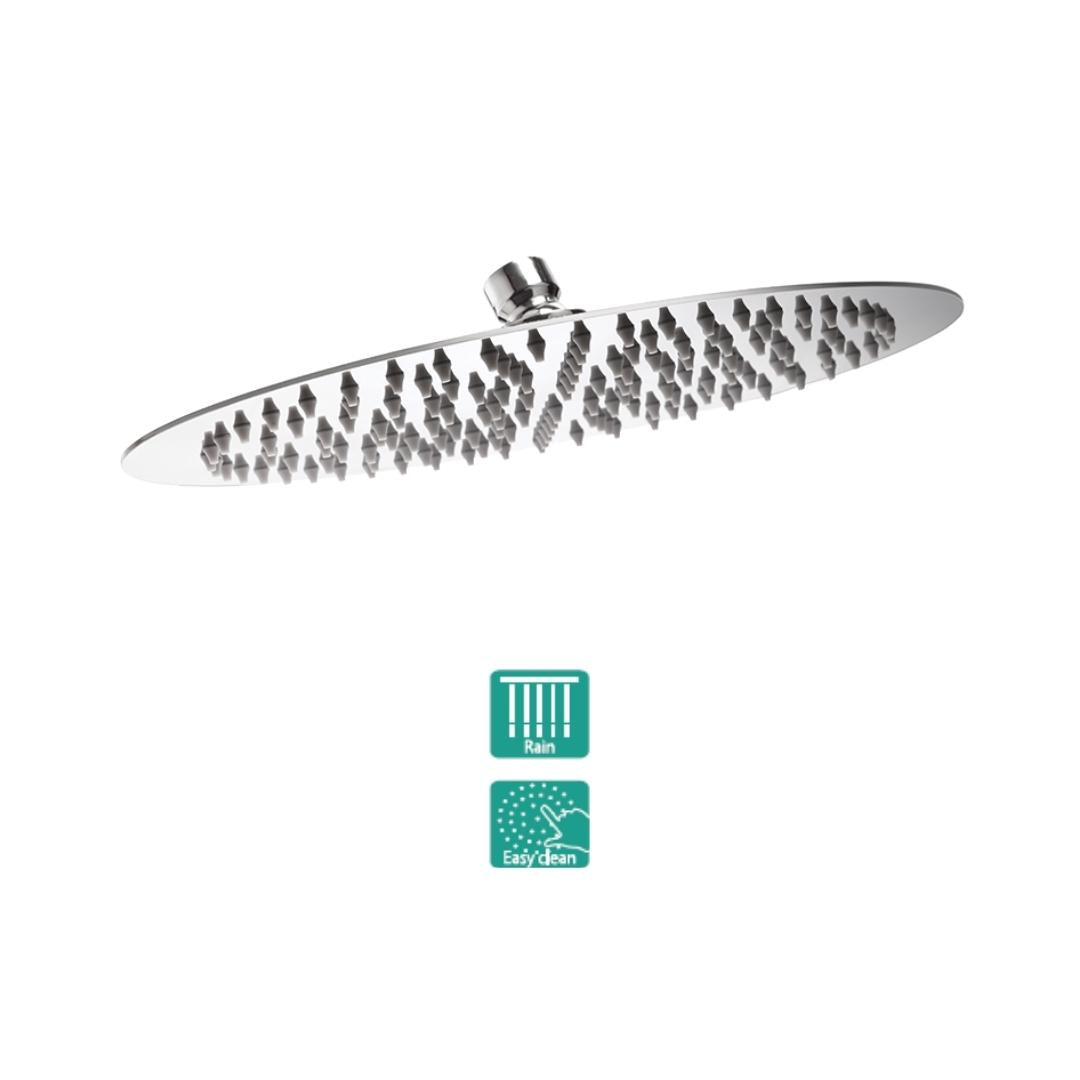 - Ultra Thin Stainless Steel Single Flow Oval 300 X 225 mm Nebula Overhead Rain Shower