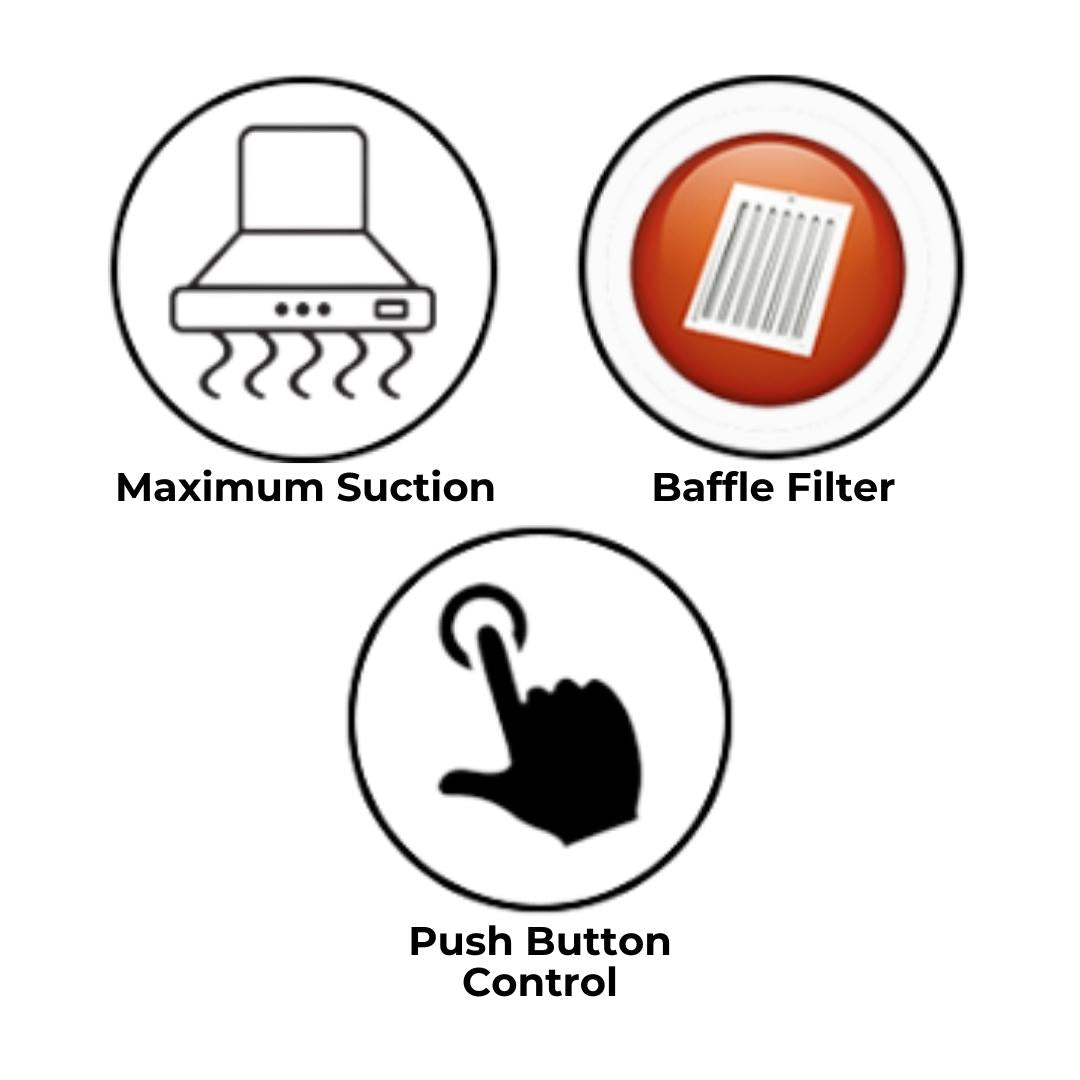 - Push Button Control : These Push buttons are durable and helps you easily control the chimney speed, LED lights and Autoclean function.
