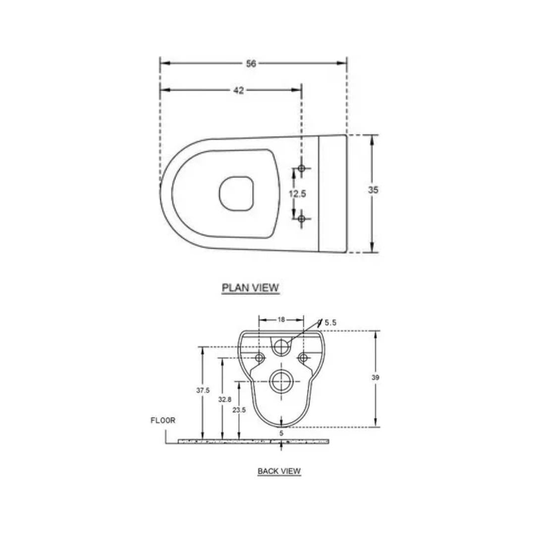 Hindware Wall Mounted White Closet WC Dove 20080 WHITE with P-Trap