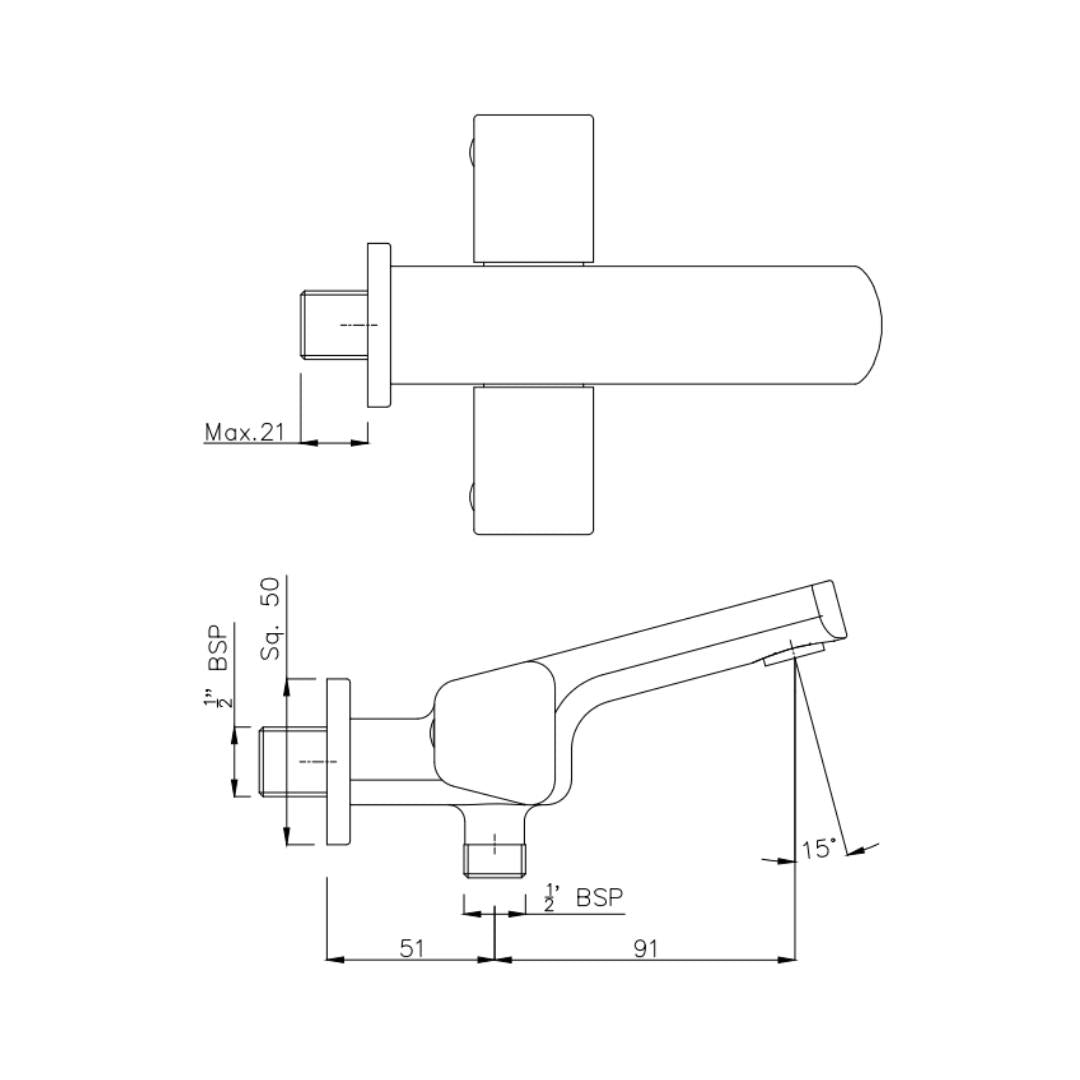 A 2-way bib tap, also known as a dual outlet bib tap or double bib cock, is a plumbing fixture with two outlets. Many 2-way bib taps come with separate controls for each outlet so you can turn on or off each outlet without affecting the other.