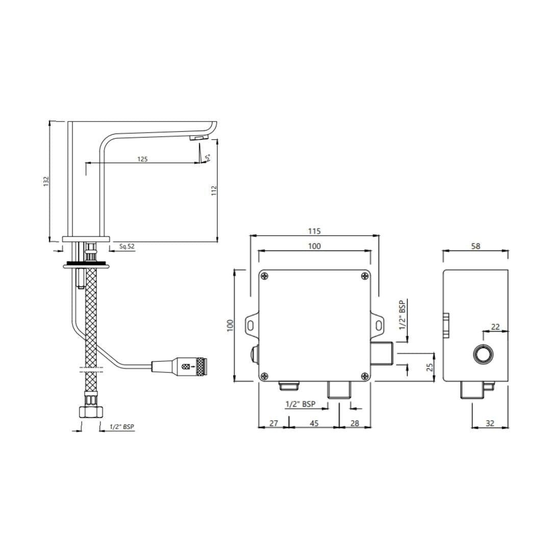 Jaquar Table Mounted Regular Sensor Basin Tap Kubix Prime SNR 35019PM - Black Matt - DC Operated