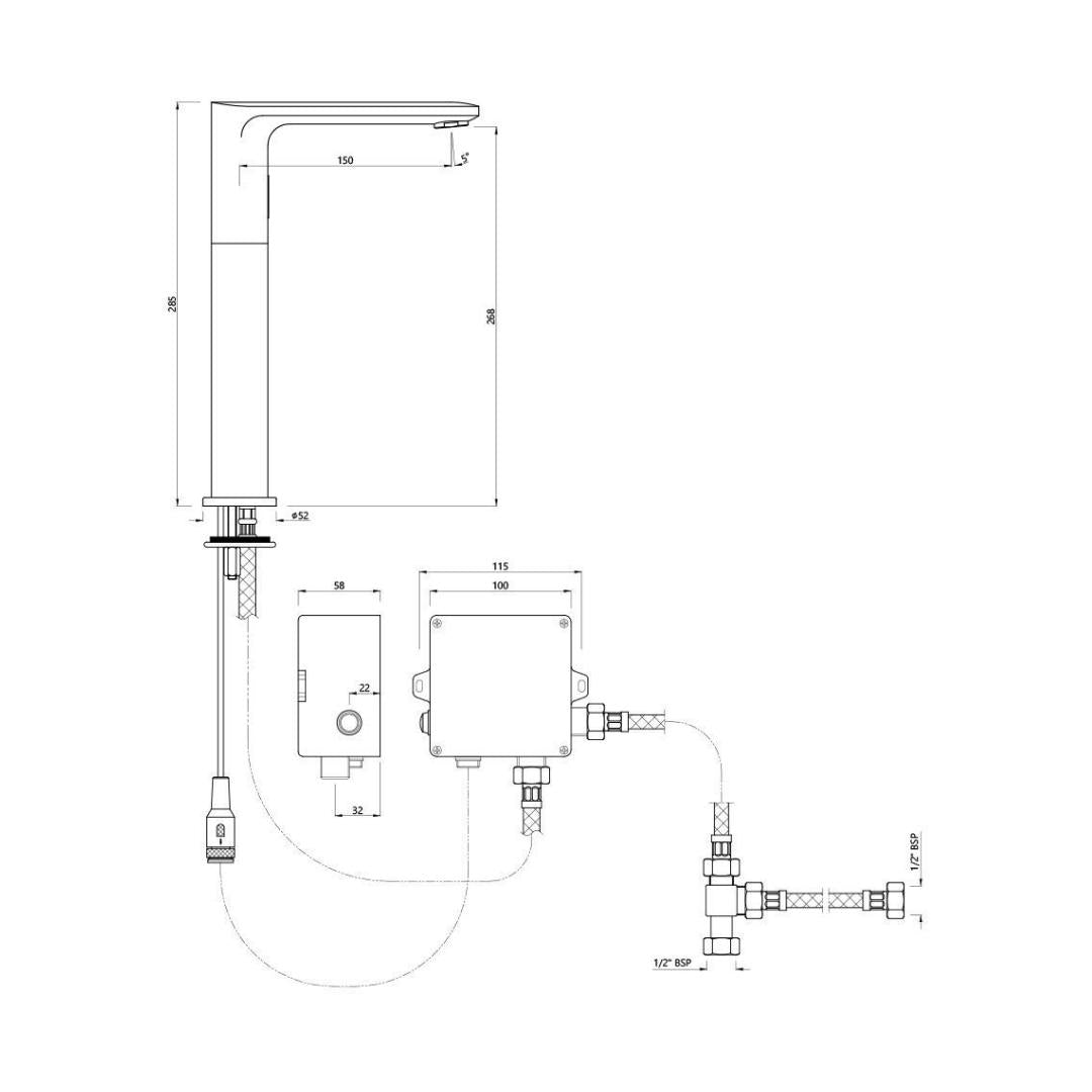 Jaquar Table Mounted Tall Boy Sensor Basin Mixer Opal Prime SNR 15017PMPK - Stainless Steel - DC Operated