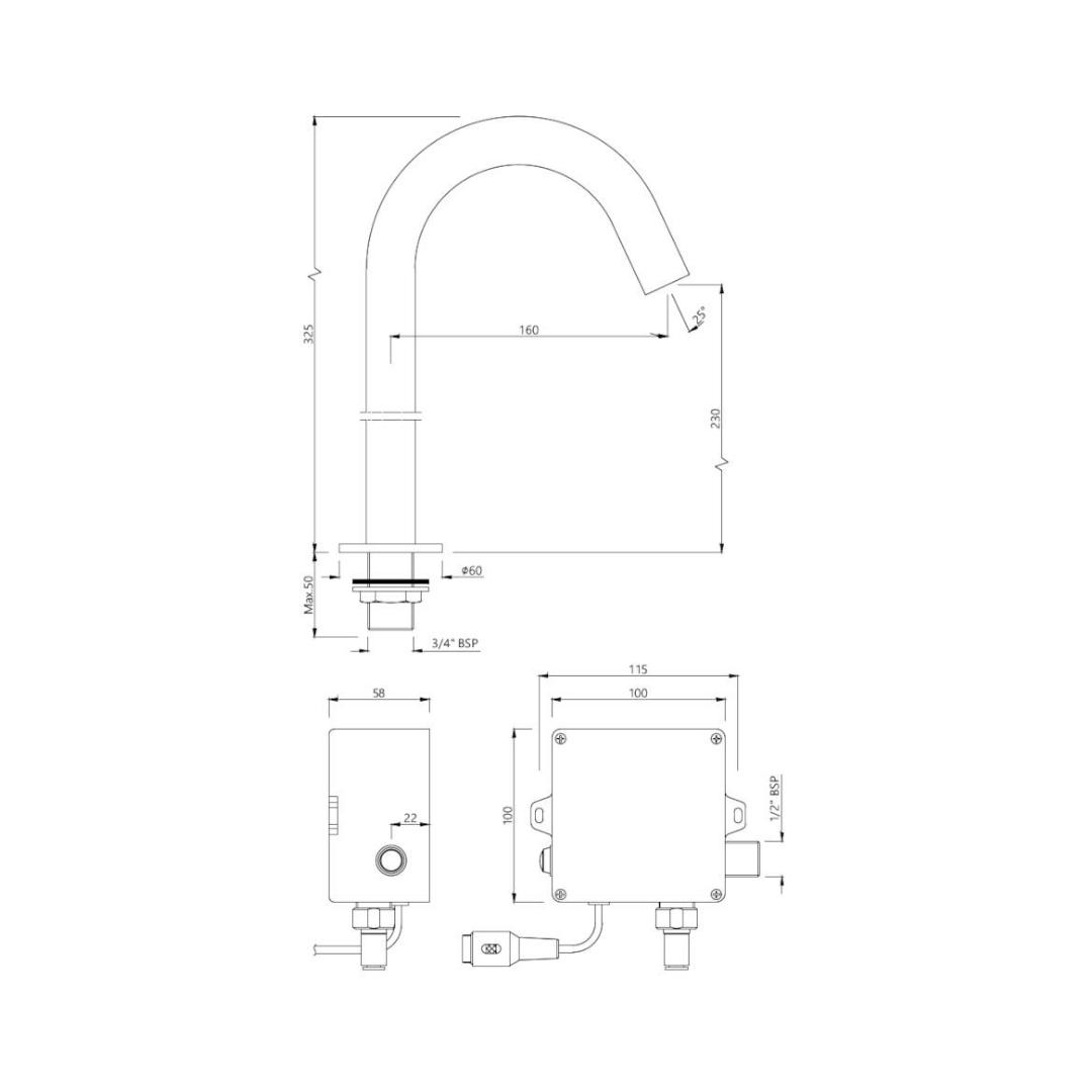 Jaquar Table Mounted Tall Boy Sensor Basin Mixer Opal Prime SNR 15017PMPK - Black Matt - DC Operated
