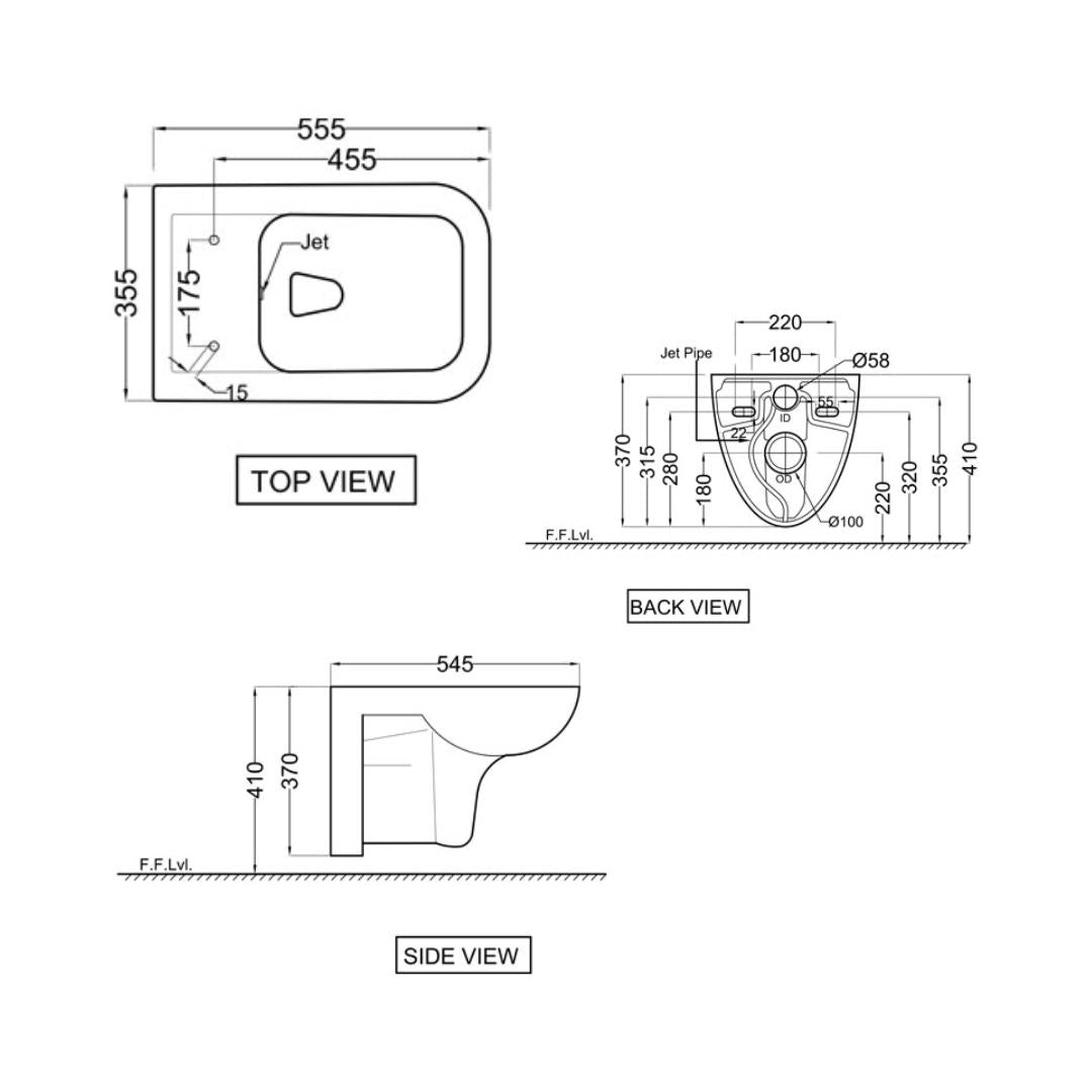 Jaquar Wall Mounted White Closet WC Florentine FLS-WHT-5953JUFSM with P-Trap