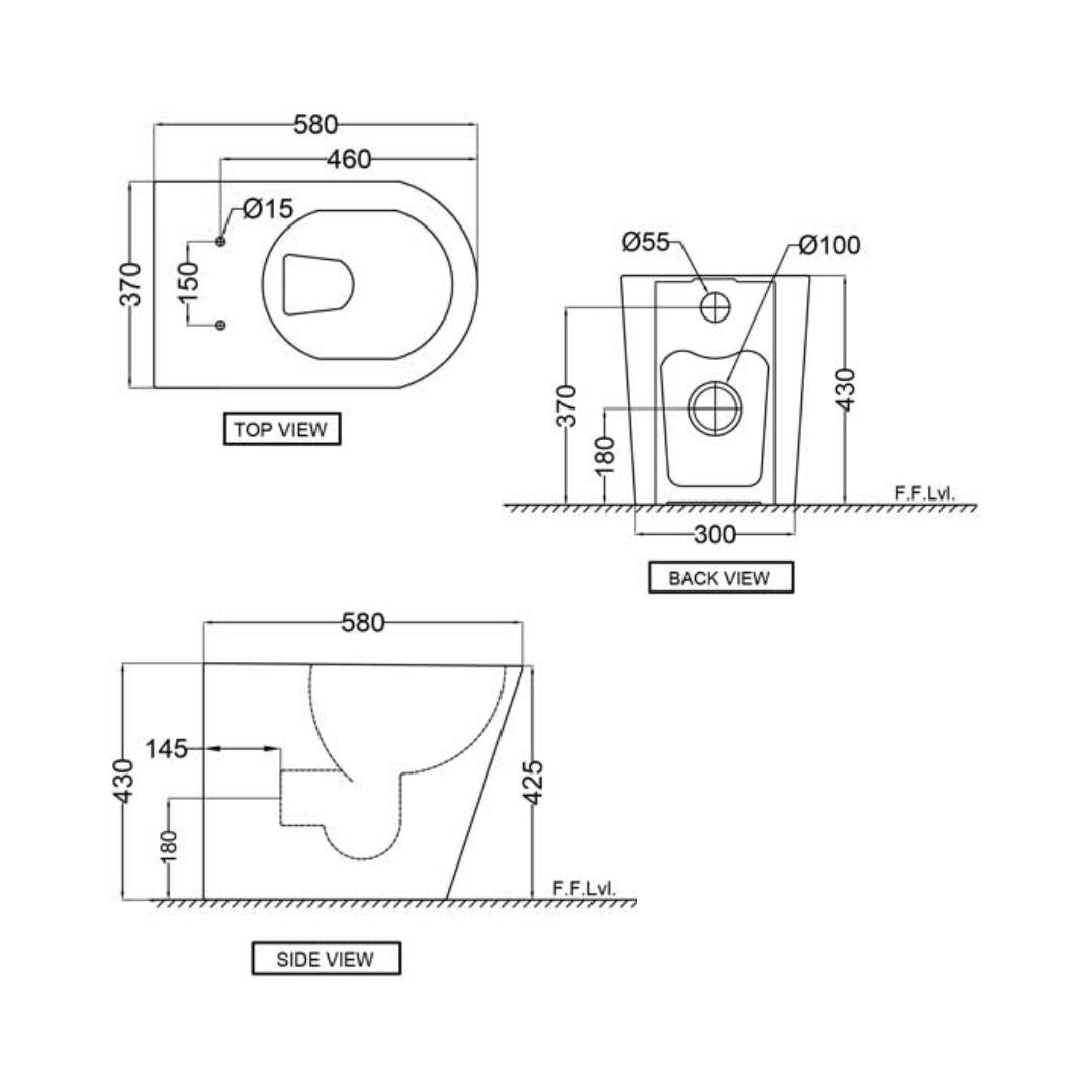 Wall mounted closets are attached directly to the wall, leaving the floor space clear. This design offers a sleek, modern look and makes cleaning the floor area much easier. It is ideal for small bathrooms as it creates an illusion of more space and provides flexibility in bowl height.