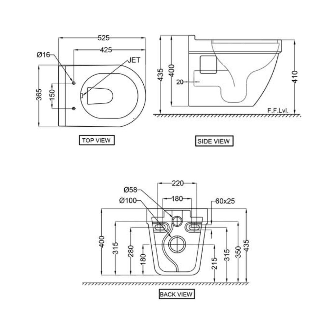 Jaquar Wall Mounted White Closet WC Solo SLS-WHT-6951JUFSM with P-Trap