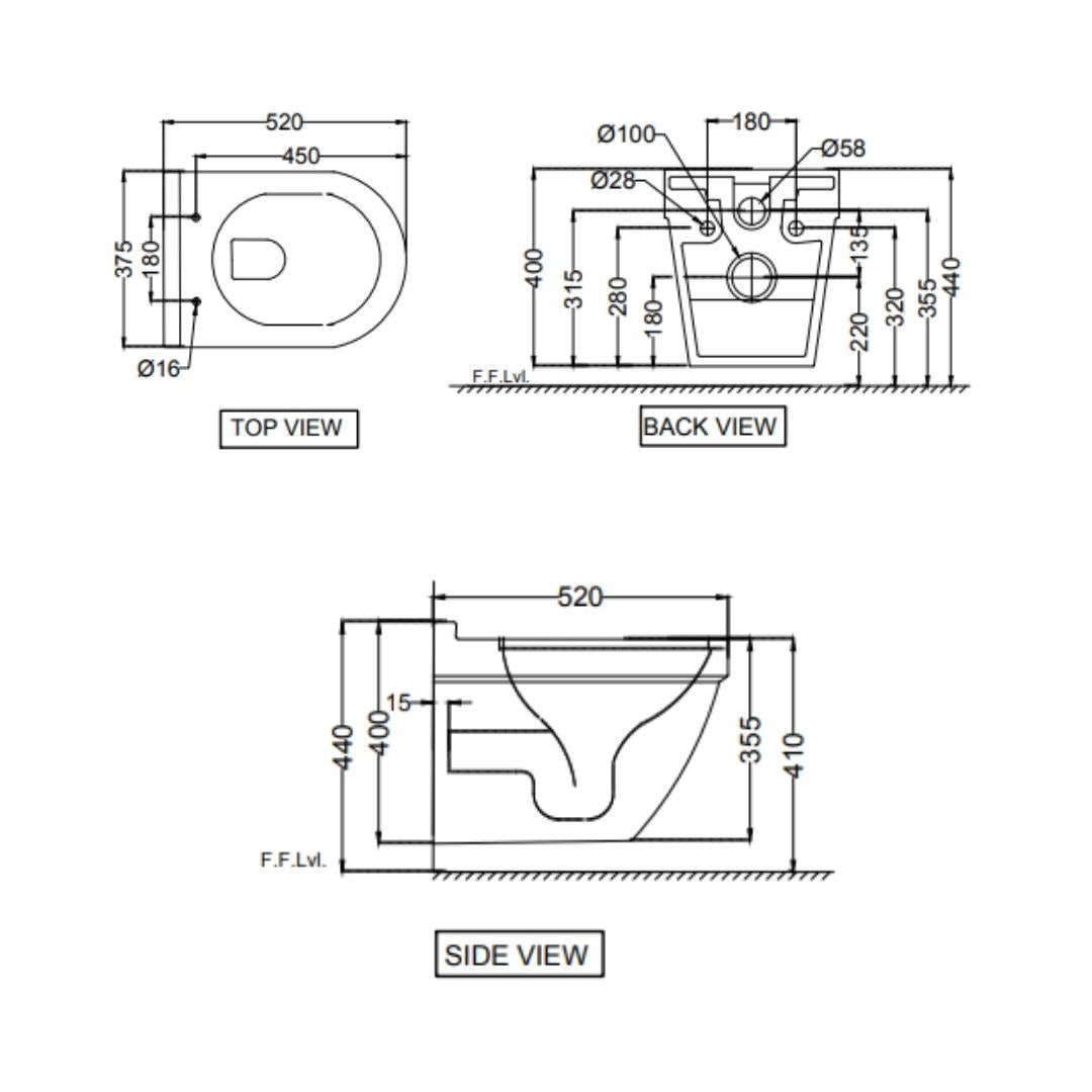 Jaquar Wall Mounted White Matt Closet WC Solo SLS-WHM-6953BIUFSM with P-Trap