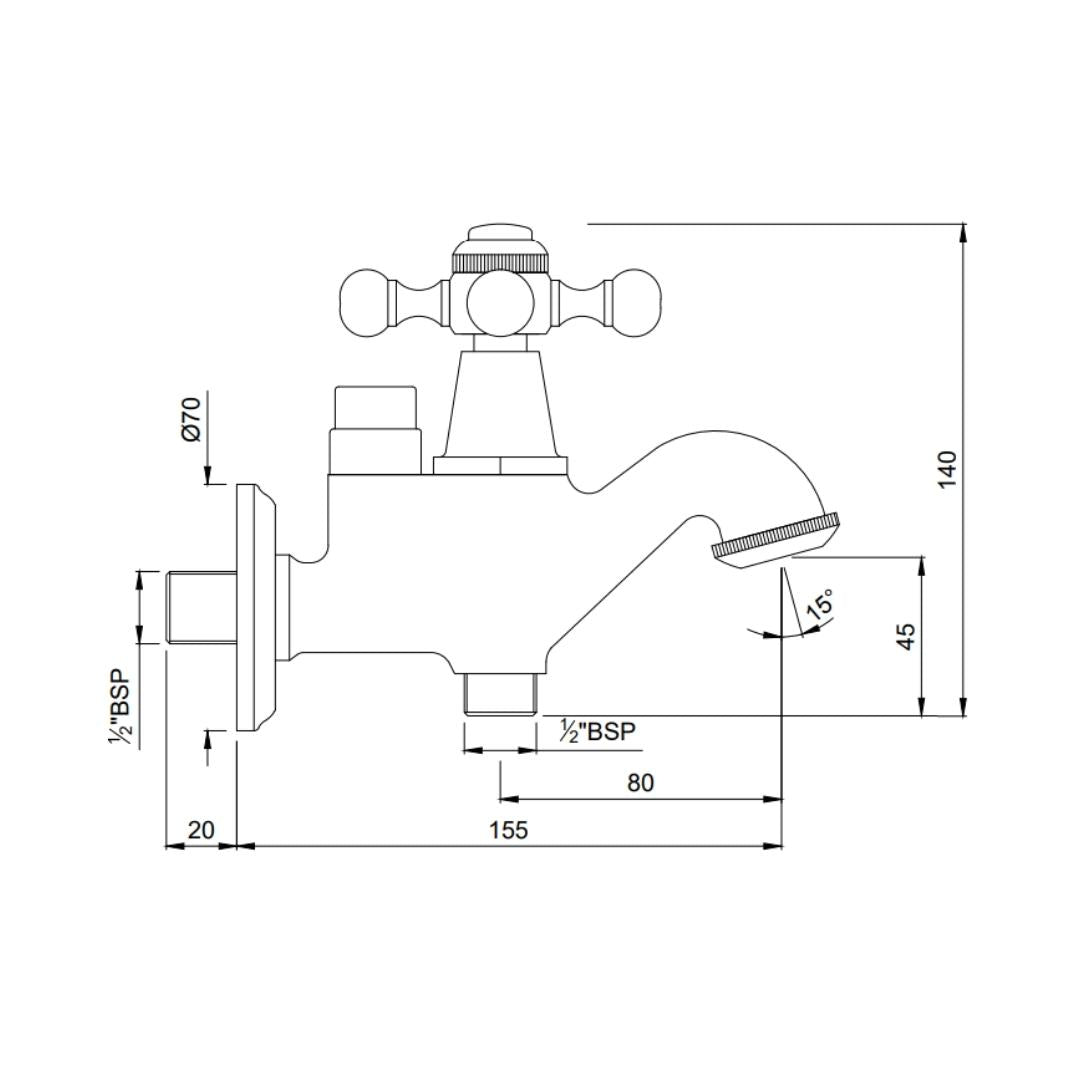 A 2-way bib tap, also known as a dual outlet bib tap or double bib cock, is a plumbing fixture with two outlets. Many 2-way bib taps come with separate controls for each outlet so you can turn on or off each outlet without affecting the other.