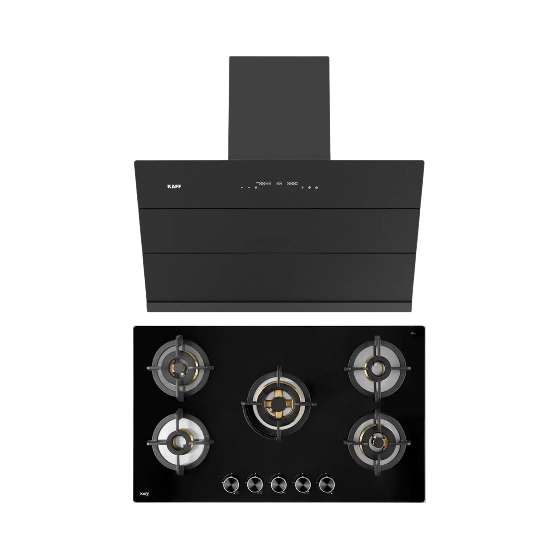 Kaff 90 cm Wall Mounted Chimney ALBURY SUPER 90 DC BLDC + Kaff 86 cm 5 Burner Hob Bellini F BLHF 865X