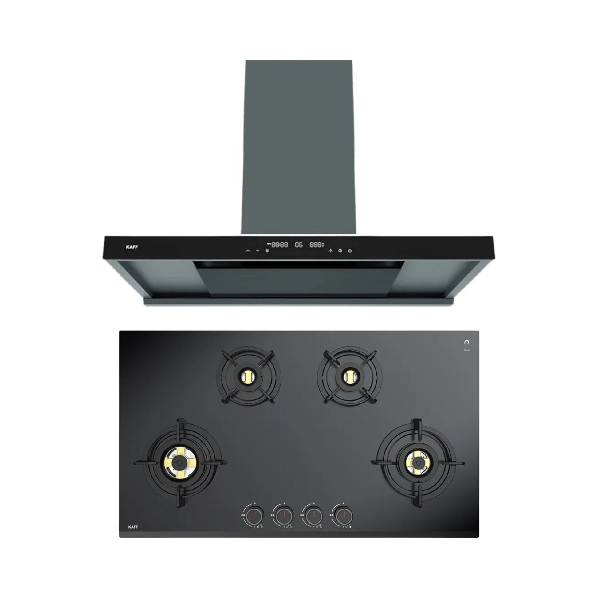 Kaff 90 cm Wall Mounted Chimney MISSONI 90 - BLDC + Kaff 90 cm 4 Burner Hob Ashford Series ASF 94M
