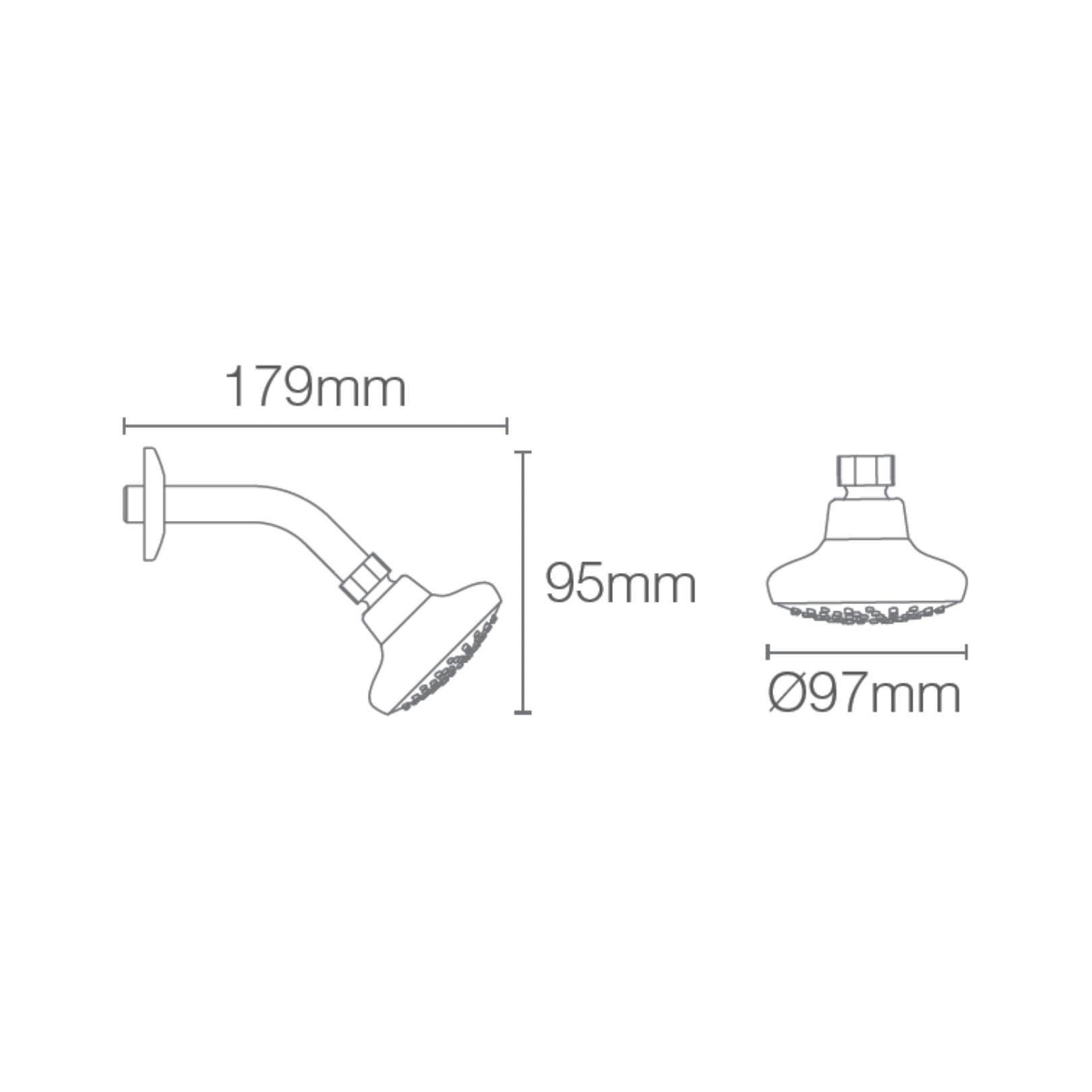 - Single Function Showerhead In Polished Chrome With Shower Arm and Flange