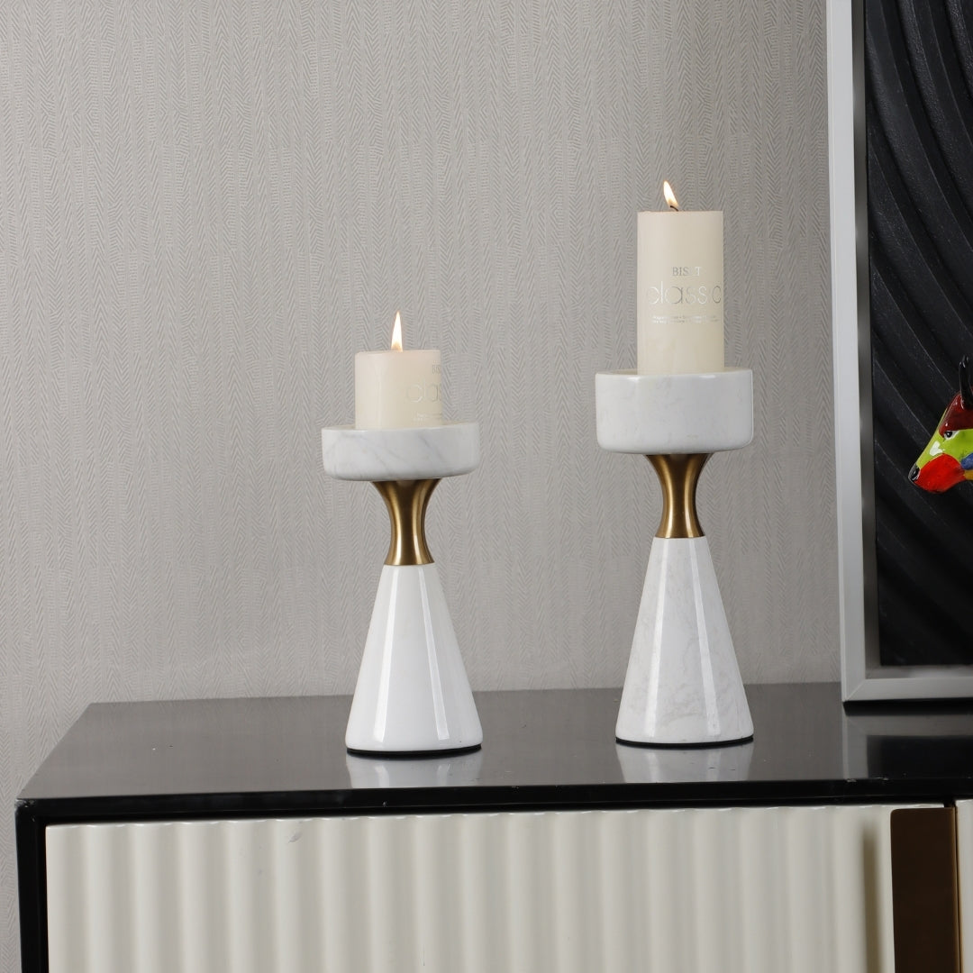 Luminous Serenity White Marble & Aluminum Candle Holder