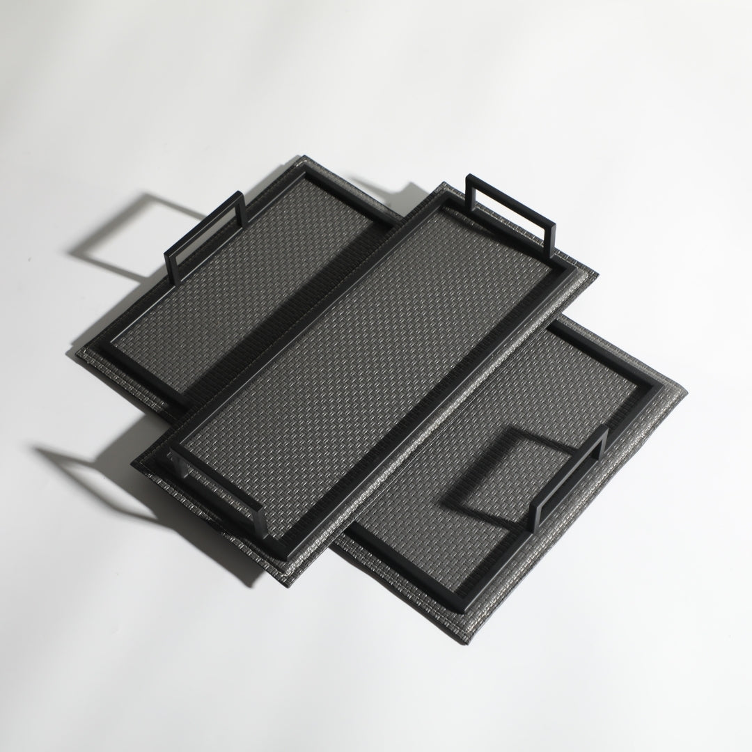 Introducing our Majestic Grey Leather Classics: Flat Trays with Vintage Metal Handles, a tribute to timeless elegance and refined practicality. These flat trays effortlessly merge the luxurious allure of grey leather with the vintage charm of meticulously crafted metal handles.Each tray in this collection is a work of art, meticulously designed with supple grey leather that exudes an understated opulence. The vintage metal handles, each one a testament to craftsmanship, add a touch of character and sophistication, making these trays an exquisite addition to any setting. Whether you're serving cocktails in style or incorporating them as elegant decor accents, they elevate every moment with a sense of enduring grandeur.Our Majestic Grey Leather Classics are more than mere serving accessories; they are a statement of timeless luxury and practical indulgence. Elevate your serving experience or adorn your decor with these exquisite trays, where the fusion of grey leather and vintage metal handles creates an aesthetic that's both majestic and distinguished, evoking a sense of sophistication and enduring allure.