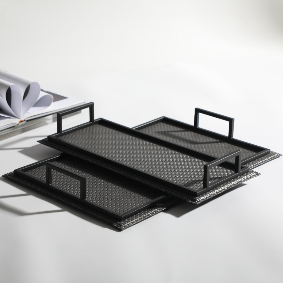 VelvetLux Suede & MDF Artisan Woven Serving Decorative Tray