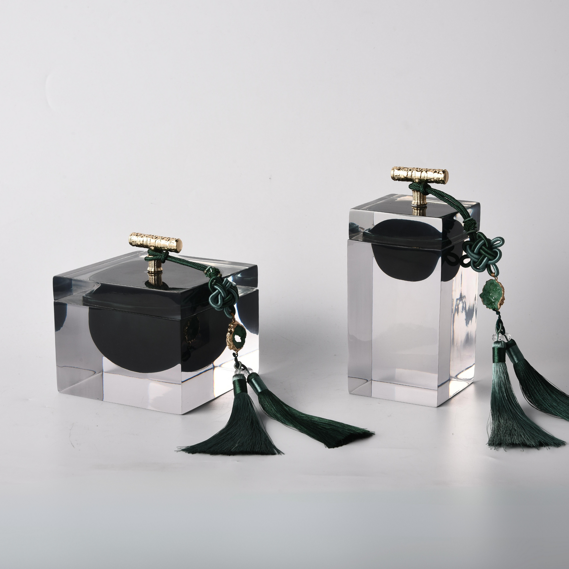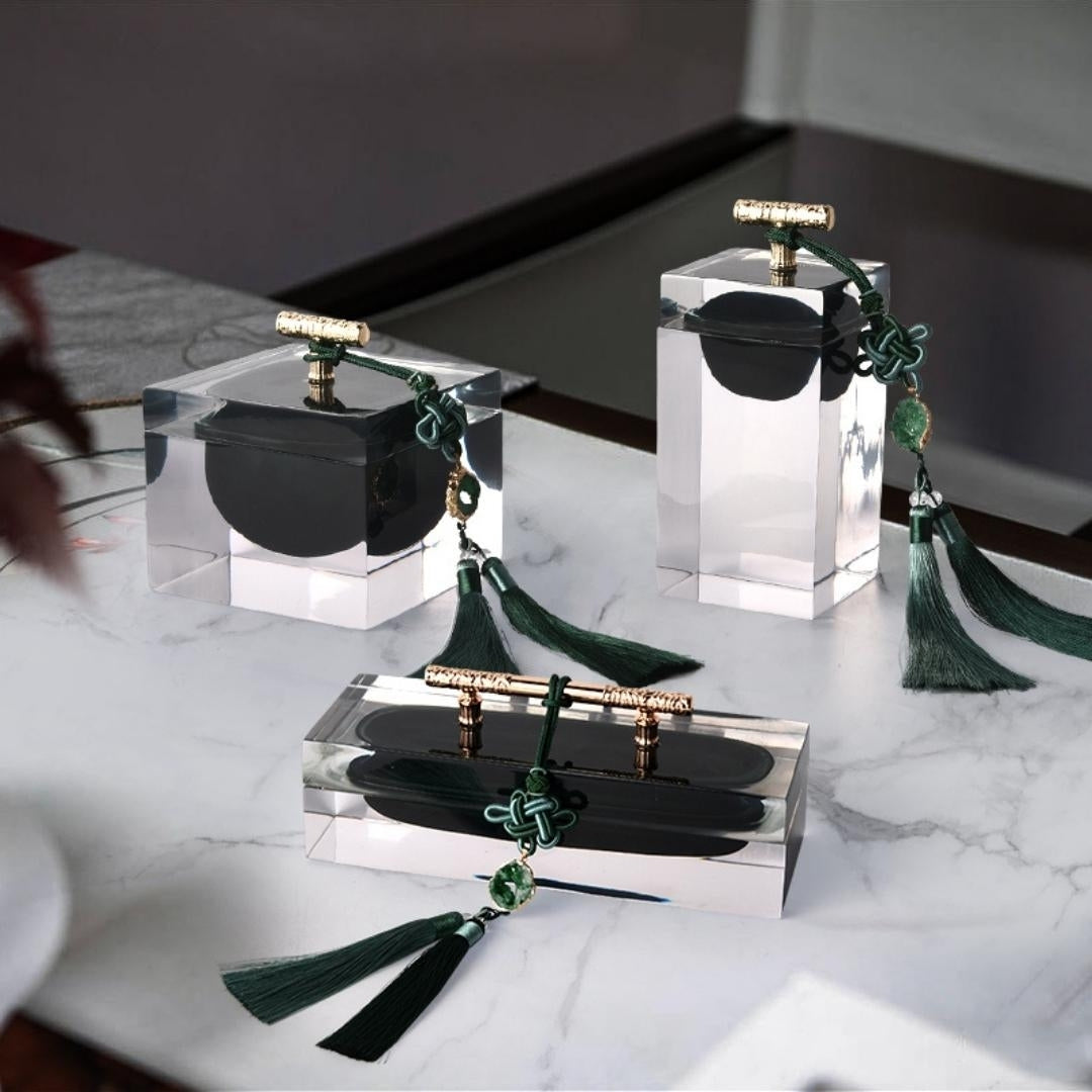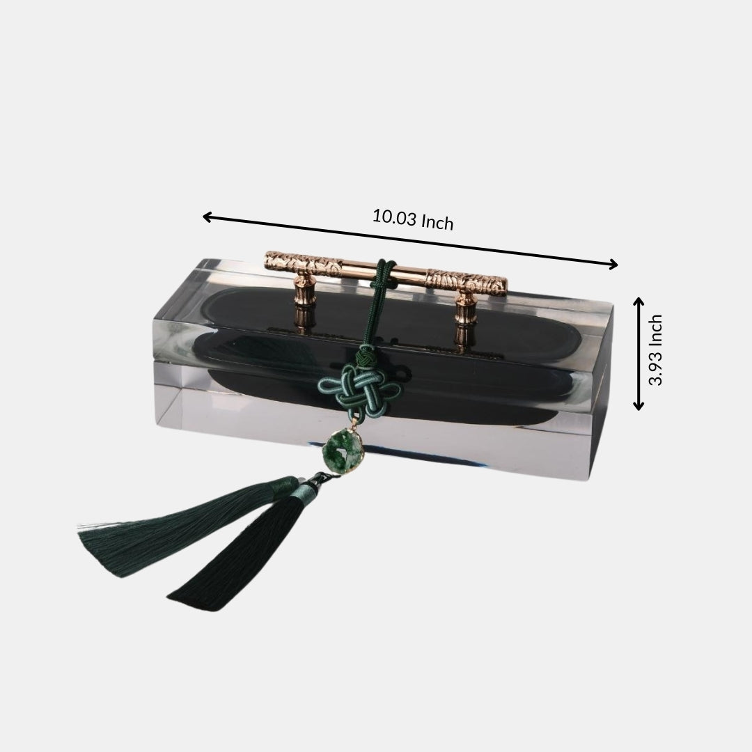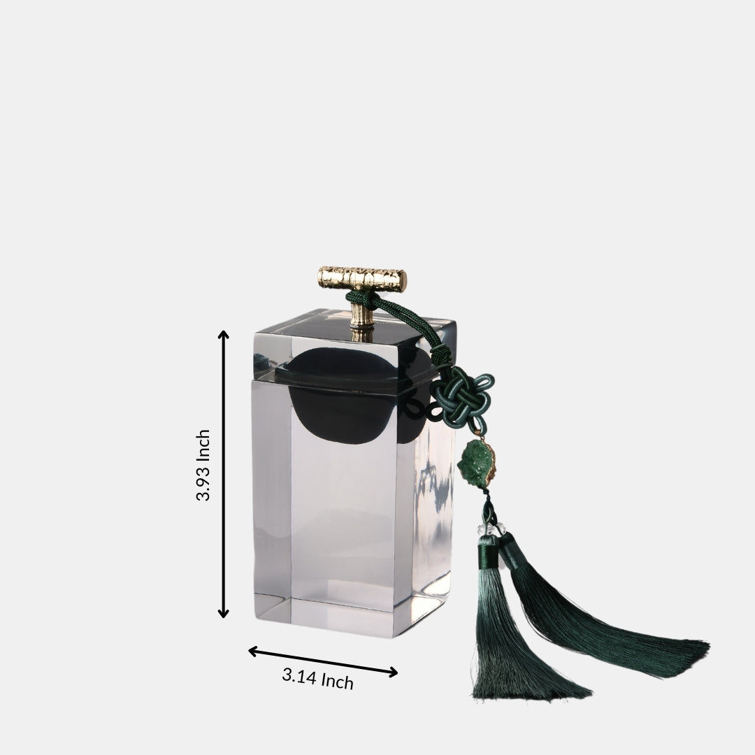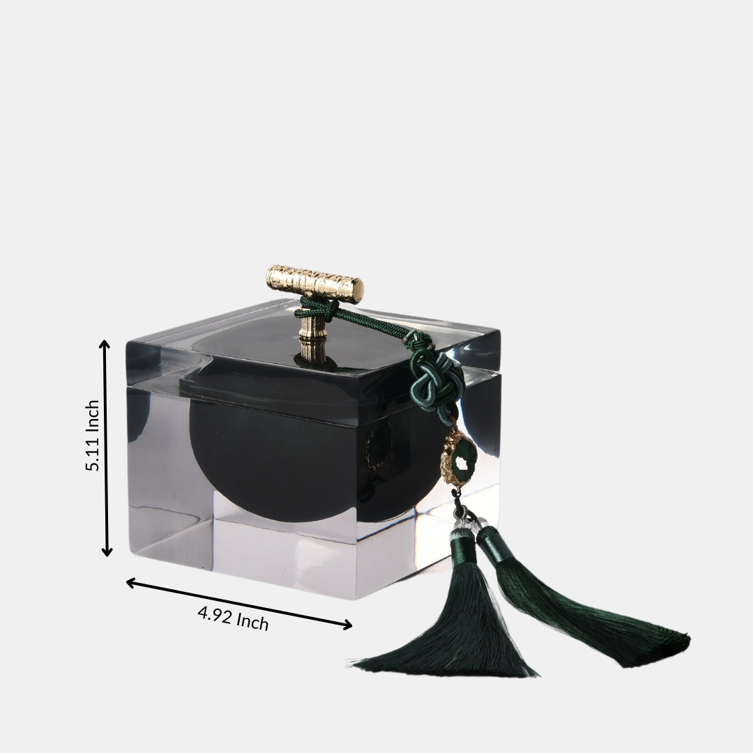 The glass resin majestic jewelry box, complete with an elegant tassel, is a symbol of opulence and practical elegance. Crafted with meticulous attention to detail, this jewelry box features a glass resin construction that adds a touch of sophistication to your dressing table. The elegant tassel provides a sense of regal charm. Whether used for storing your precious jewelry or as a decorative accent, it becomes a symbol of both functionality and refined beauty. With this jewelry box, you're not just organizing; you're showcasing your appreciation for the finer things in life.