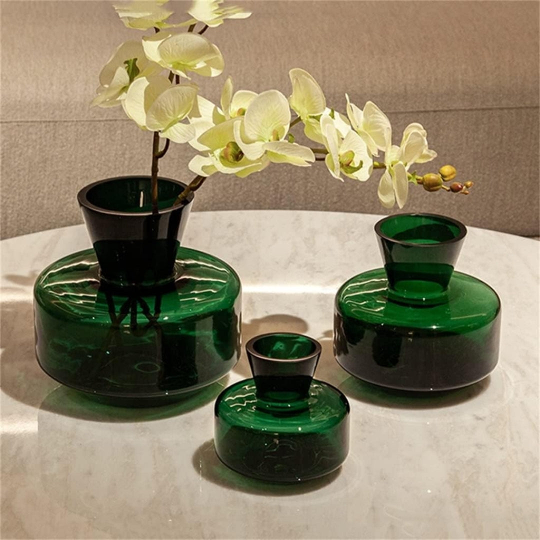 Infuse your space with the enchantment of the Meadow Symphony Glass Elegance vase. Crafted from fine green glass, this medium-sized vase embodies the vibrancy of a meadow in full bloom. Its balanced size allows for a variety of creative floral displays. Whether it graces your dining table or becomes a centerpiece for special occasions, this vase captivates with its charm and elegance. Experience the allure of nature's beauty with this glass elegance that transforms your space into a harmonious symphony of blooms.